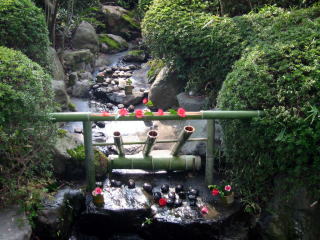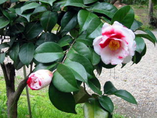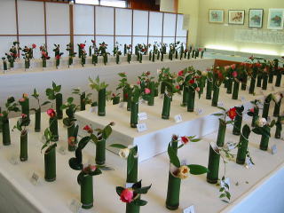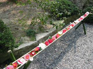 | 会場までのアプローチに、椿で色々趣向を凝らしていました。 |