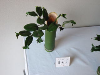 ![]() 葉の下から葉が出ている珍種の椿 梵天白 |