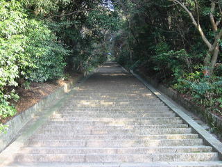 | 豊国廟は、東山七条の交差点を東に女坂を上がって、京都女子大を通り過ぎて突き当たりの 阿弥陀ケ峰の山上に五輪石塔が建っています。 その途中に新日吉神社(いまひえじんじゃ)が あります。 |