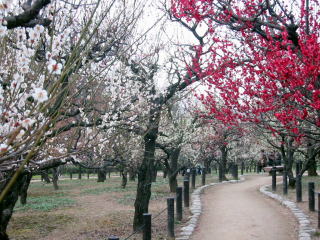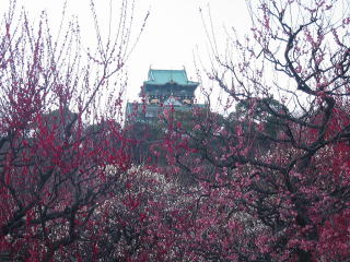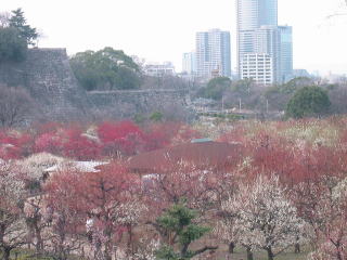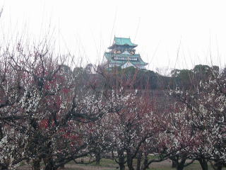 | 大阪城の梅林に久し振りに行って来ました。前は休日に行ったので凄い人でしたが、今日はゆっくり 見られました。天気が少し悪かったのですが、大阪城梅林は品種・本数とも本当に見応えがあります。 |