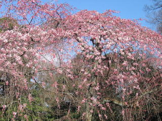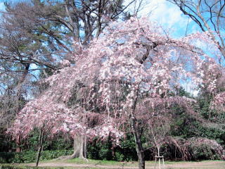![]() 出水の小川前のしだれ桜は、咲き始めでした。 |