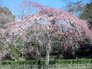 | 3月初めまでの異常な暖かさで、今年はどんなに早く咲くのかと思っていましたが、 この2週間程の寒さで、例年通りになりそうです。早咲きの4本が1・2分咲いてました。 愈愈京都の桜が始まります。 |