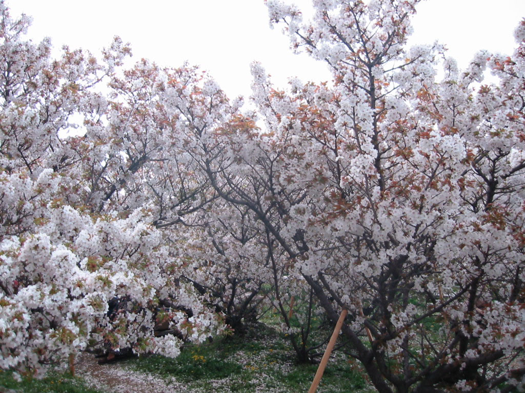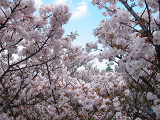 | 朝日放送が取材に来ていました。夕方のニュースを見たら、遅咲きで高さ2メートル程度にしか 成長しない御室桜が何故低いのかを科学的に解明するために、本格調査をするそうです。 |