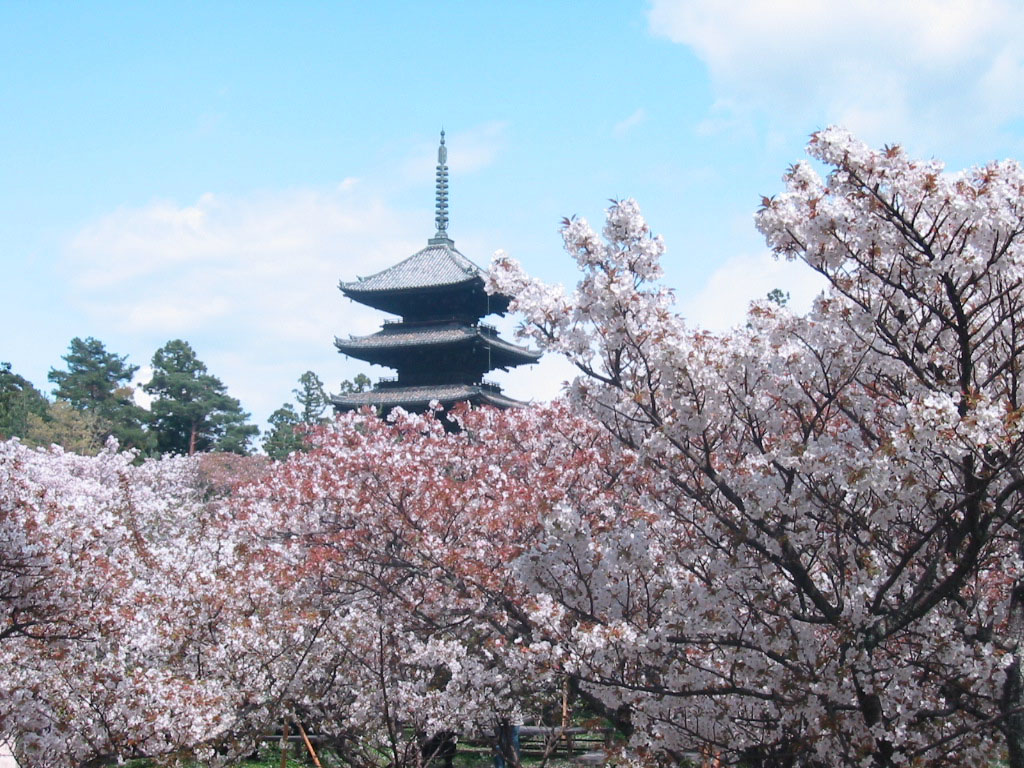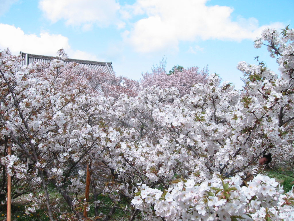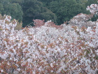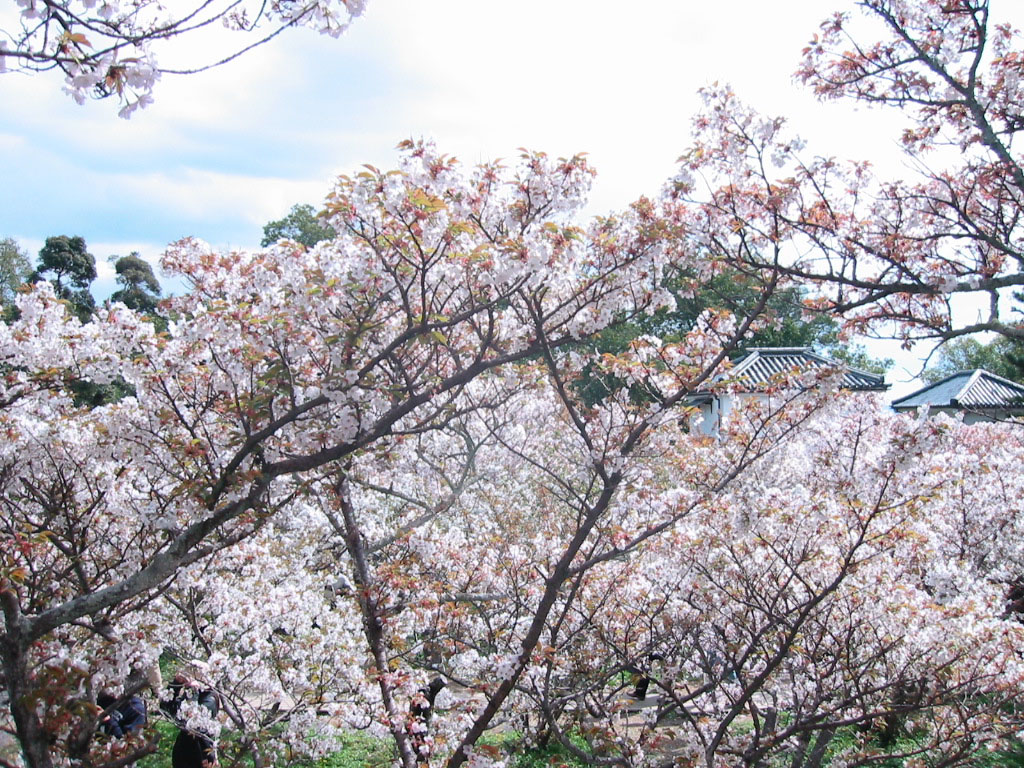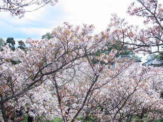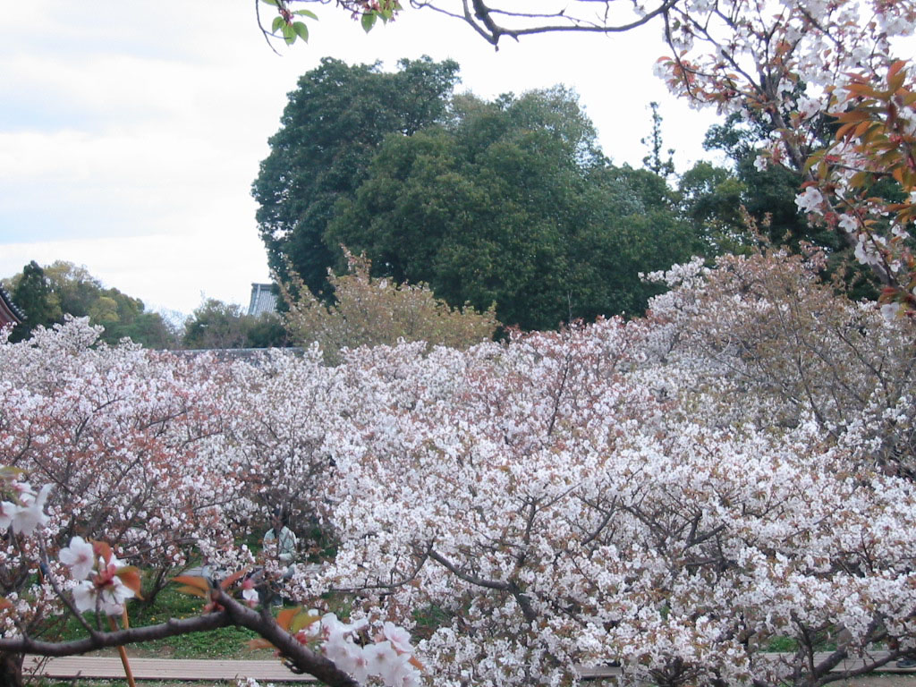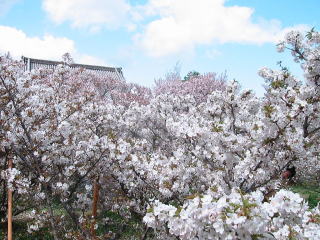| 京都の遅咲きの桜で有名な仁和寺御室桜の優待券を貰ったので、行ってきました。普段静かな 山内は、次から次からの引きも切らない凄い人で埋まってました。(写真をクリックすれば拡大されます) |