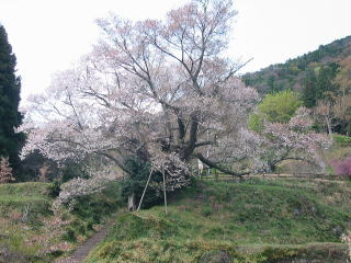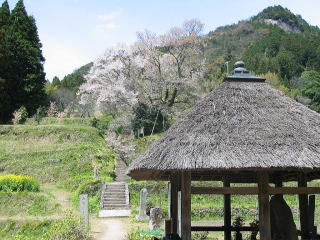 | 佛隆寺は真言宗室生寺派の末寺で室生寺の南門として位置し、室生山の宿坊、住職の隠居寺 として重要な役目を果たしていたそうです。古桜は樹齢900年で、周囲7.7m、高さ16mを越え、 奈良県下最大最古の桜です。 |