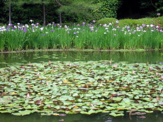 | 平安神宮の花菖蒲を見終わった後、まだ時間があるので南禅寺の野村別邸(碧雲荘)前の花菖蒲 を見に行く途中、明治の元老山県有朋の別荘、無鄰菴(むりんあん)に久し振りに寄って来ました。 |