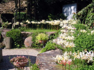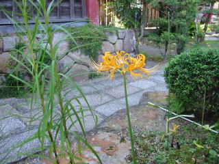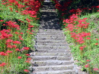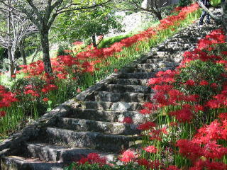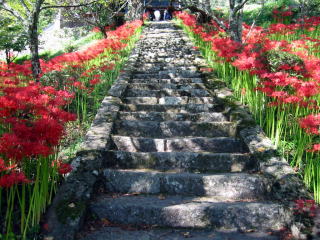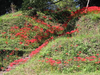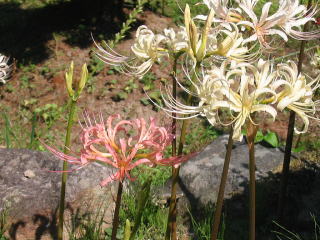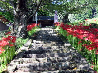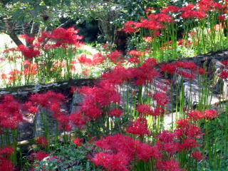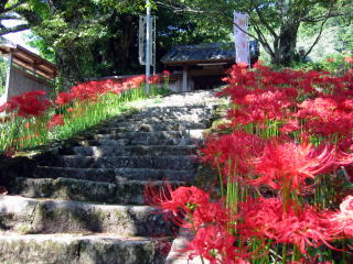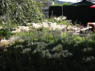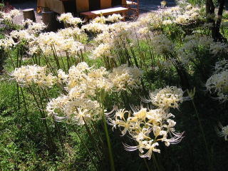 | 入山料100円を払って小さな山門を入ると、白い彼岸花が一杯咲いてました。 |