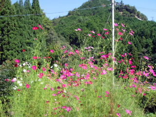 | 佛隆寺への道すがらコスモスが綺麗に咲いていました。 |