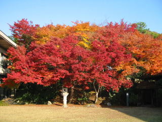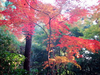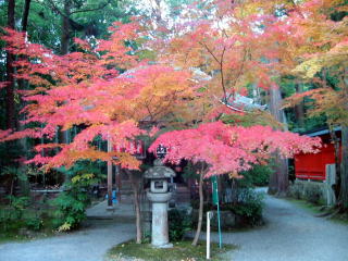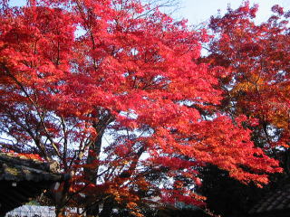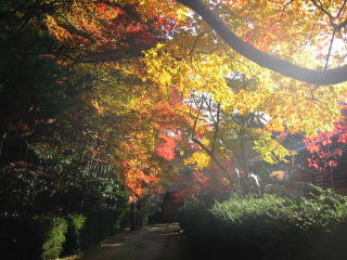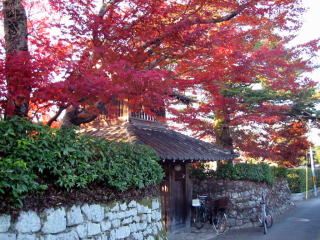 | 自転車で修学院の鷺森神社まで一直線で行ったのですが、参道の紅葉は未だ未だでした。北側 の道の突き当たりが関西セミナーハウスで、ここは一番の見頃でした。 地図 |
