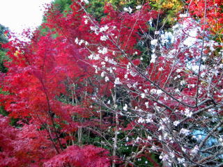 ![]() 寒桜と真っ赤な紅葉 |
