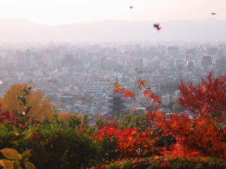 | 五条の大谷さんに行ったついでに清水寺に寄ったら、身動き出来ない人の波に飲み込まれ 早々に、正法寺に避難しました。霊山観音の上にあるこのお寺は、京都で一番眺望が良いと 思われる庭の縁側に座布団が置かれてあって、真っ赤に紅葉した木の下に、京都の市街が ゆっくり見下ろせます。 下界の喧騒が嘘の様に静かでした。 地図 |