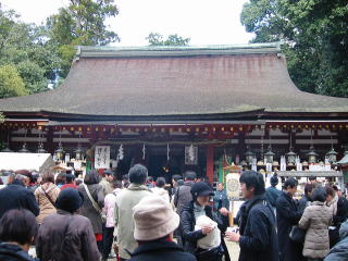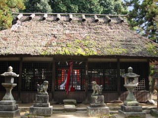 | 拝殿が珍しい藁葺きで、地元の一家が和服で初詣に来ていました。 地図 |