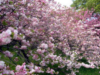 | 御所の南東、「出水の小川」の八重桜は、八分咲でも迫力あって綺麗でした。 これでもうじき桜の季節がおわります。 |