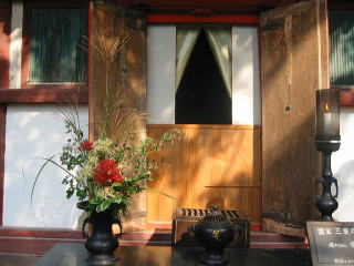 ![]() 紅白の彼岸花が飾られている国宝 三重塔内に 安置されている元の本尊 薬師如来 → |