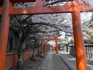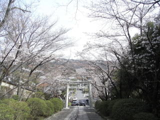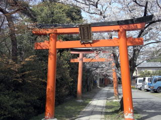 | 鳥居の下のサクラは満開で、本殿の前では女性だけのグループがワインで花見の宴をしていました。 地図 |