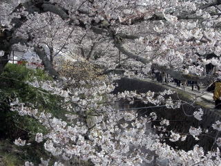 | 今年も何時ものコースを歩いてきました。桜の開花は早かったのですが、寒の戻りの寒い日が長 く続いたので、未だ満開前の状況でしたが、久し振りの晴天と日曜日が重なって、凄い人出でした。 |