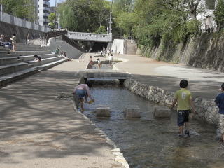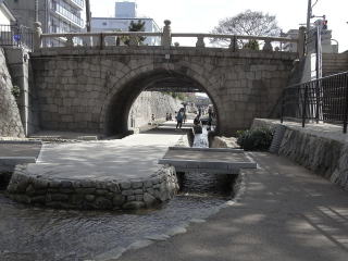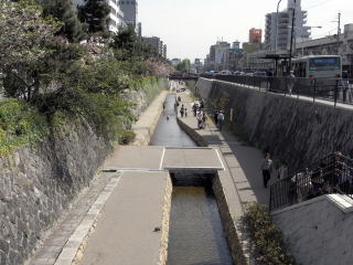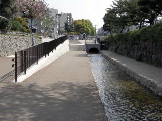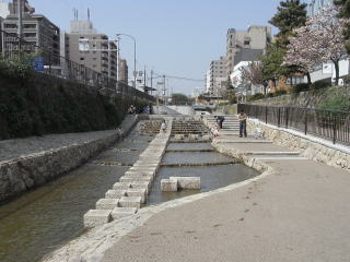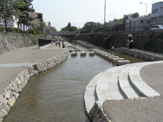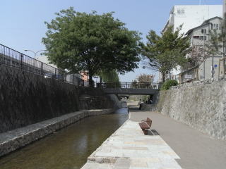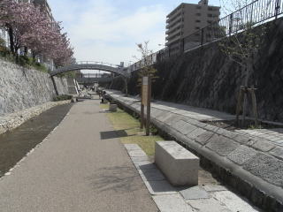 | 3月29日に堀川の一条戻り橋の北から押小路までが通水して新しく遊歩道が出来ました。 |