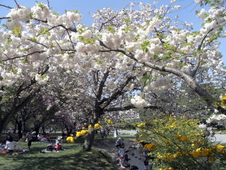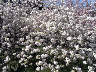 | 「出水の小川」の八重桜は満開でしたが、花付きが少なくなって隙間が見え迫力が弱くなってきました。 地図 |