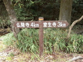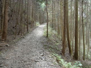 | 2008年4月、千年桜を見に来た時初めて室生古道を歩きましたが、その時唐戸峠から先、 古道を車道にする工事中で愕然としました。その出来上がりを見たくて又歩いてきました。 唐戸峠までは、以前のままの道で急坂を息絶え絶えの情けない思いで上りました。 |