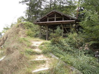 | 峠には、休憩所があって暫く息を整えるために休憩。 |