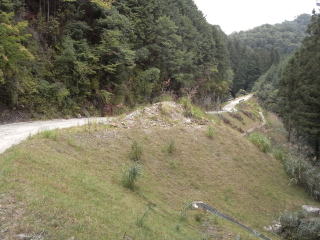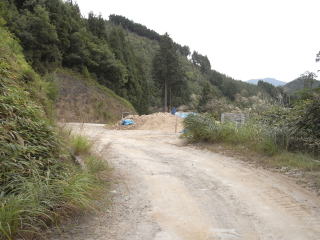 | 峠に出て来たら、まだ工事は終わっていませんでした。前回は工事用車両が止まっていたり、 あっちこっち道を掘り起こしていましたが、今は後、舗装すれば完成と云う感じでした。 |