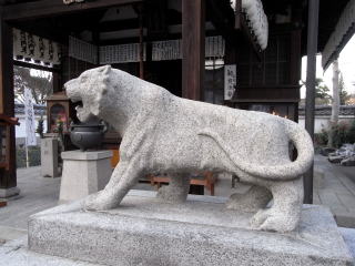![]() 阿形の虎さんの口の中にお賽銭が乗っています |