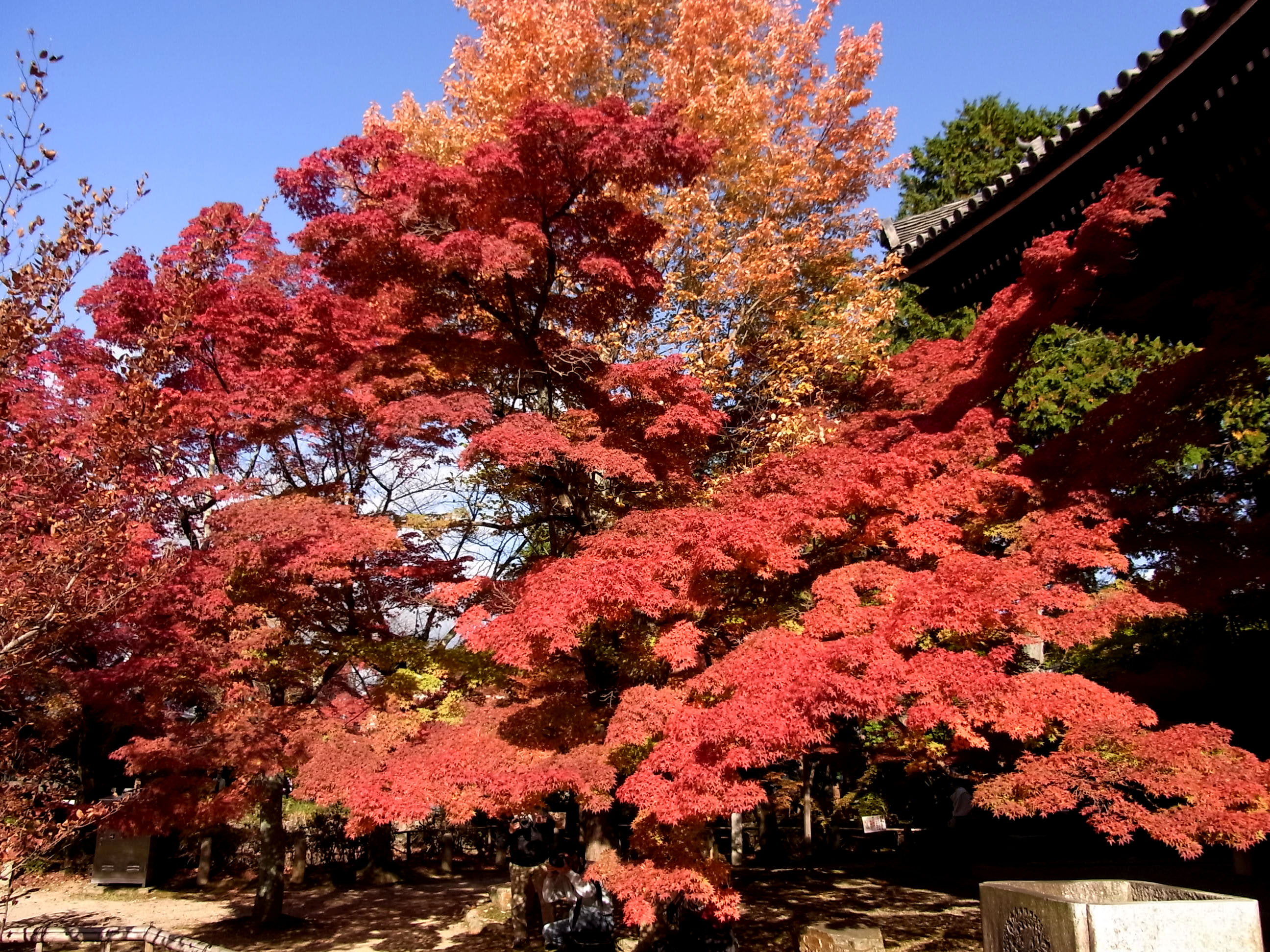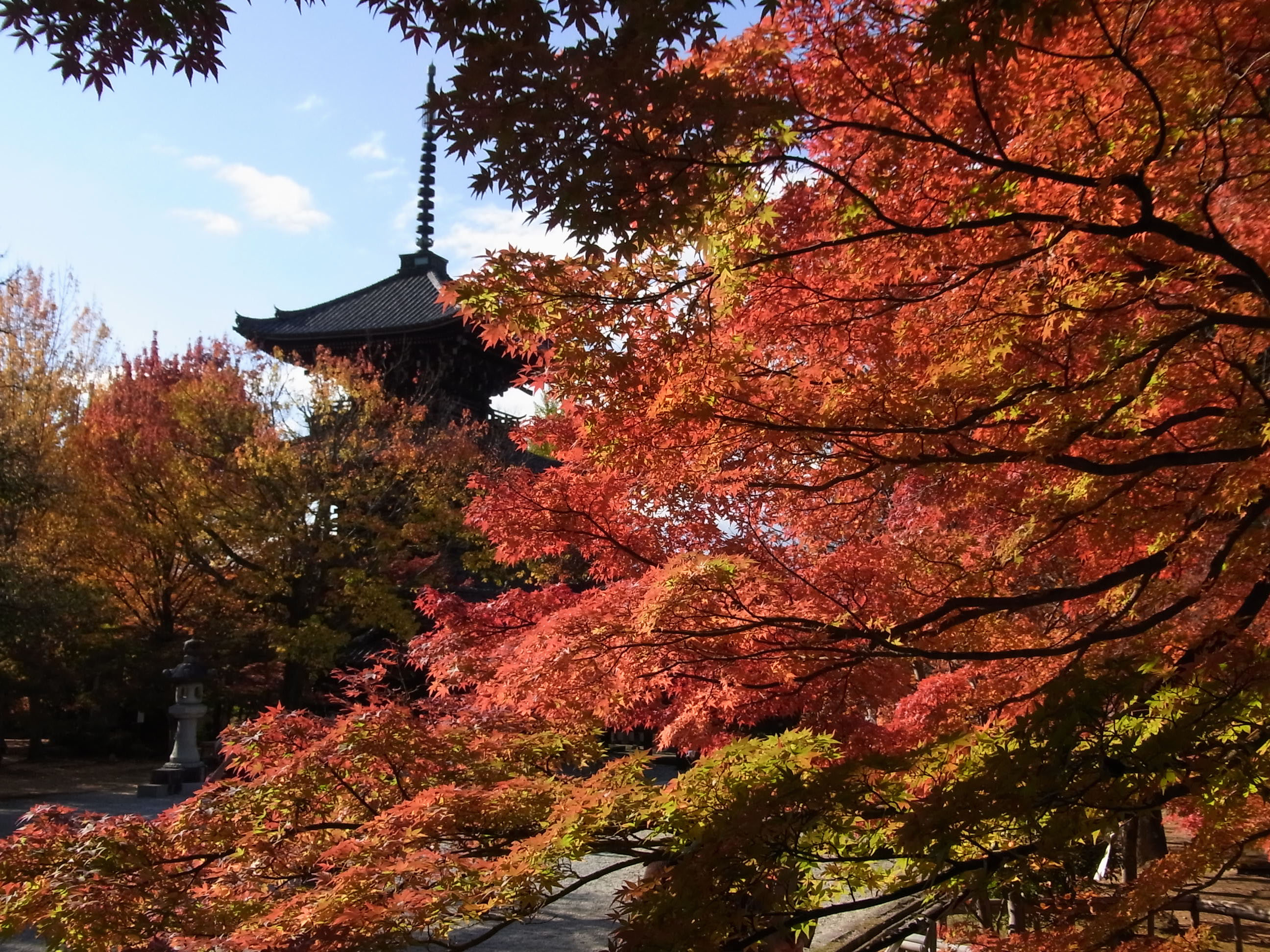 | 真如堂はまだ少し早いかなと思っていましたが、、本堂裏と三重塔の南の参道以外は綺麗に 色付いていました。 もう一度楽しめそうです。 |