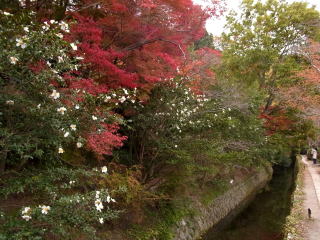 | 喧騒の永観堂の前を通って春とは違う哲学の道をゆっくり散歩。 拝観料を払わず綺麗な紅葉を十分楽しめました。 |