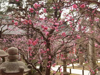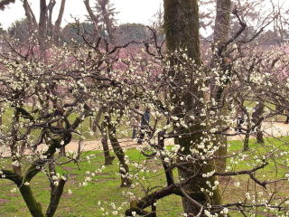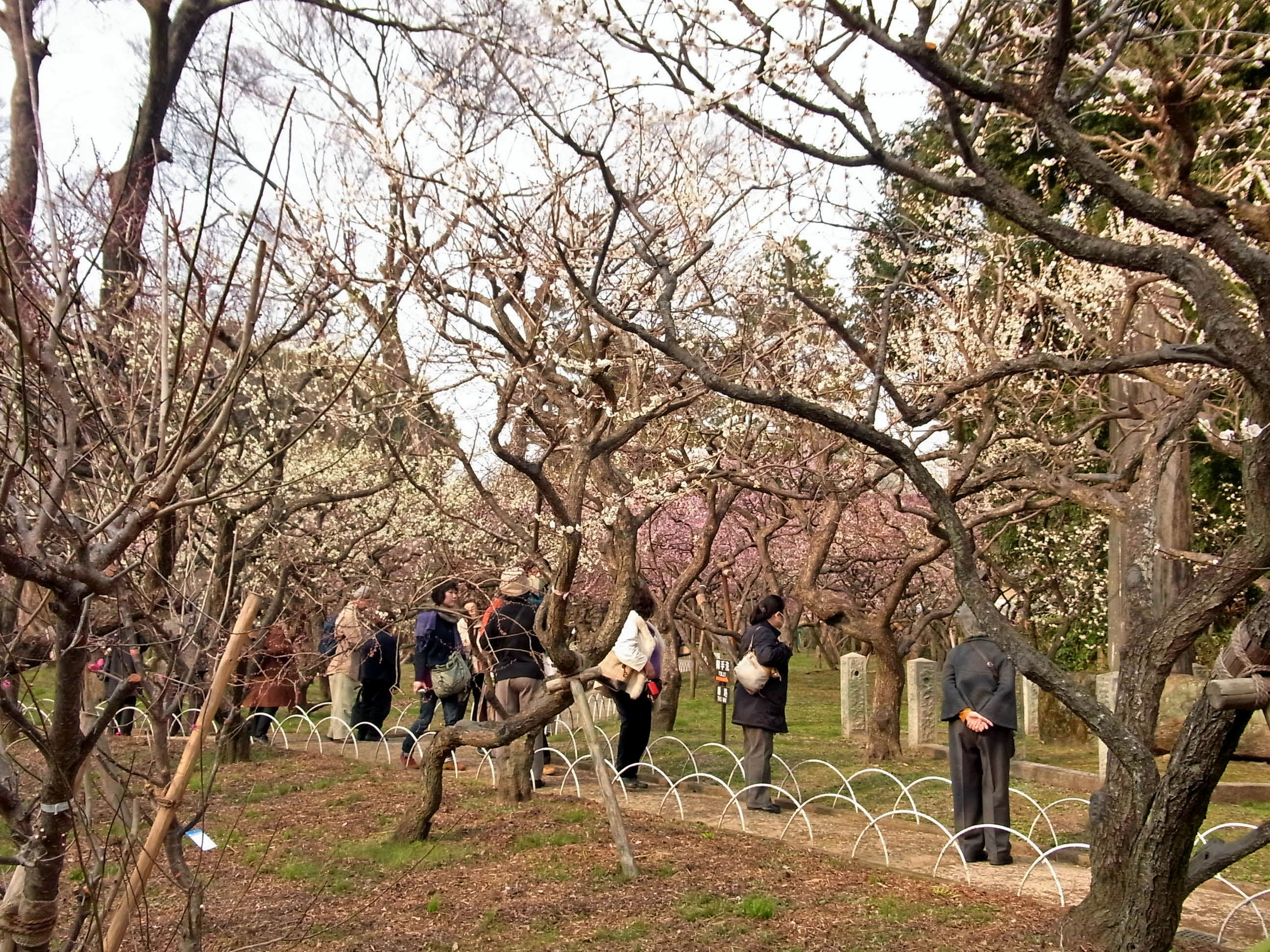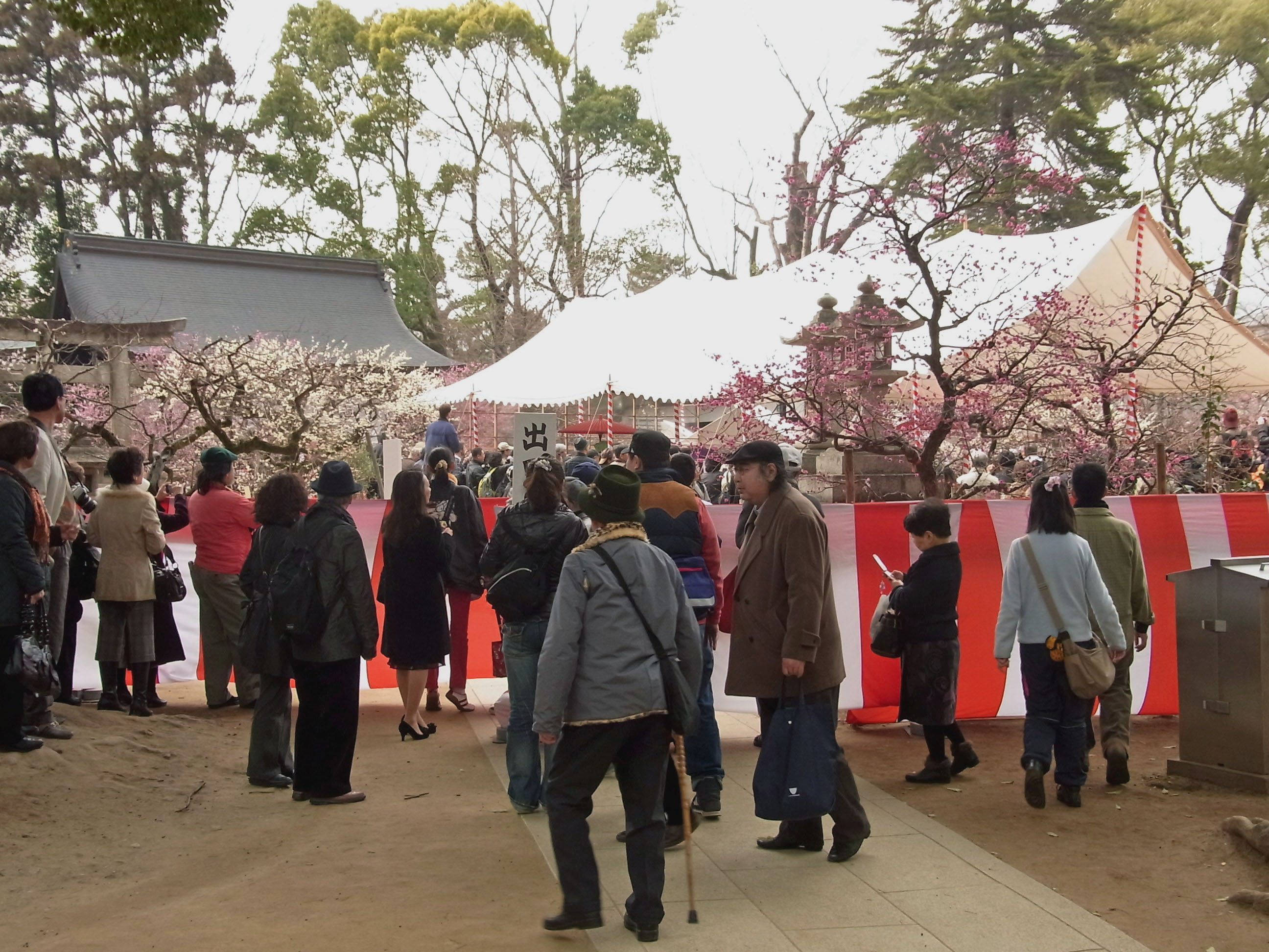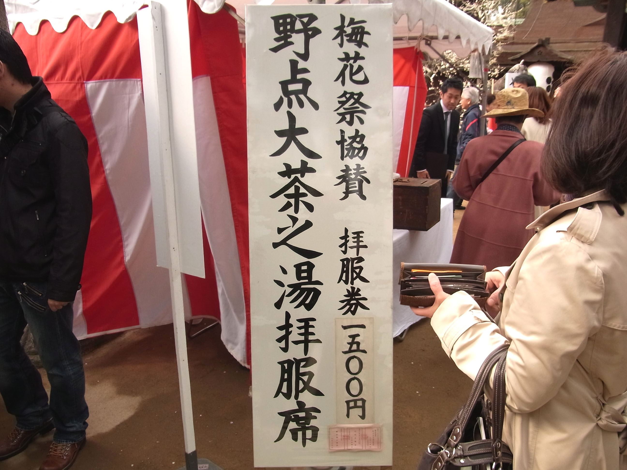 | 梅花祭に間に合うかなと思っていた梅も五分程度まで咲き、たくさんの人が天神さんに訪れて いました。肝心の梅花祭は、年々ガードが固くなって幔幕の中が見辛くなっているのが残念。 (写真をクリックすれば拡大されます) |