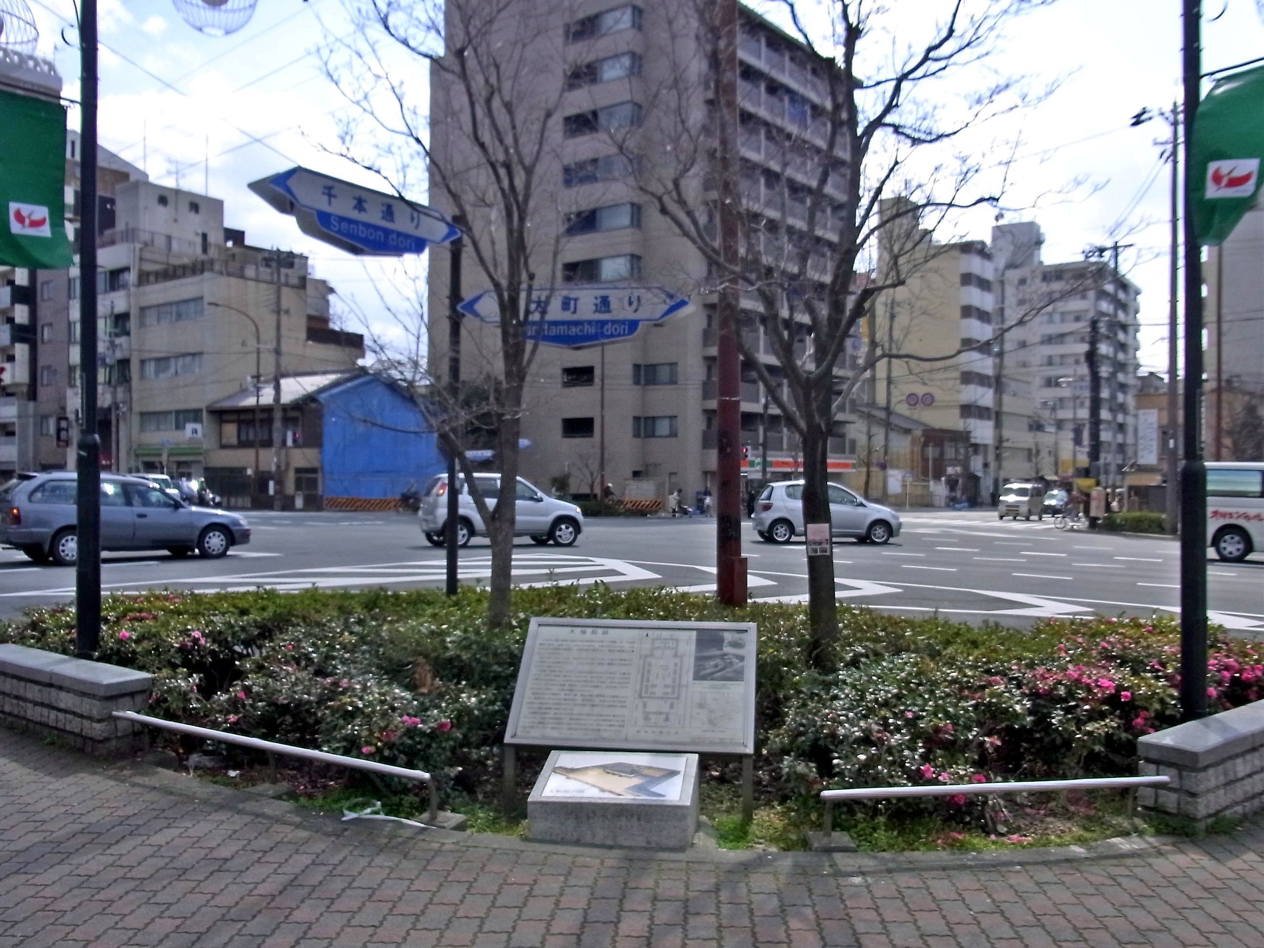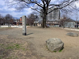 | 千本丸太町には、朝廷の正殿である大極殿跡の石碑 |