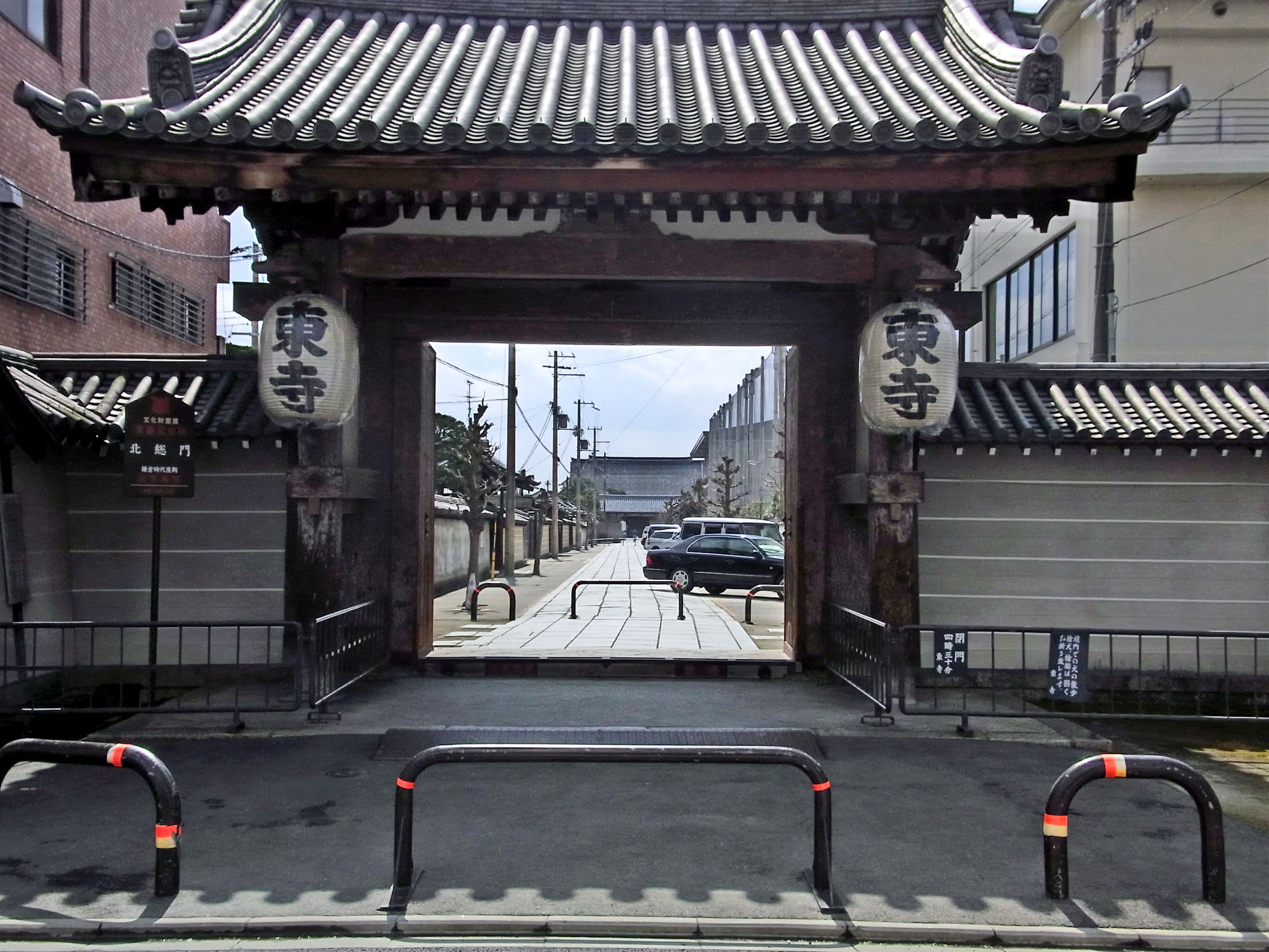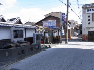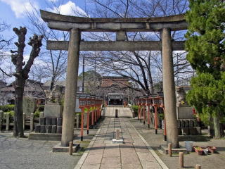 | 千本通が七条で行き止まりなので、梅小路公園の中を通って、大宮通まで出て来て、JRの線路の 下を潜った所が八条通で、そこを西へ進みます。東寺の北門の前を過ぎたら、八条壬生川の角に 六孫王神社があります。 地図 |