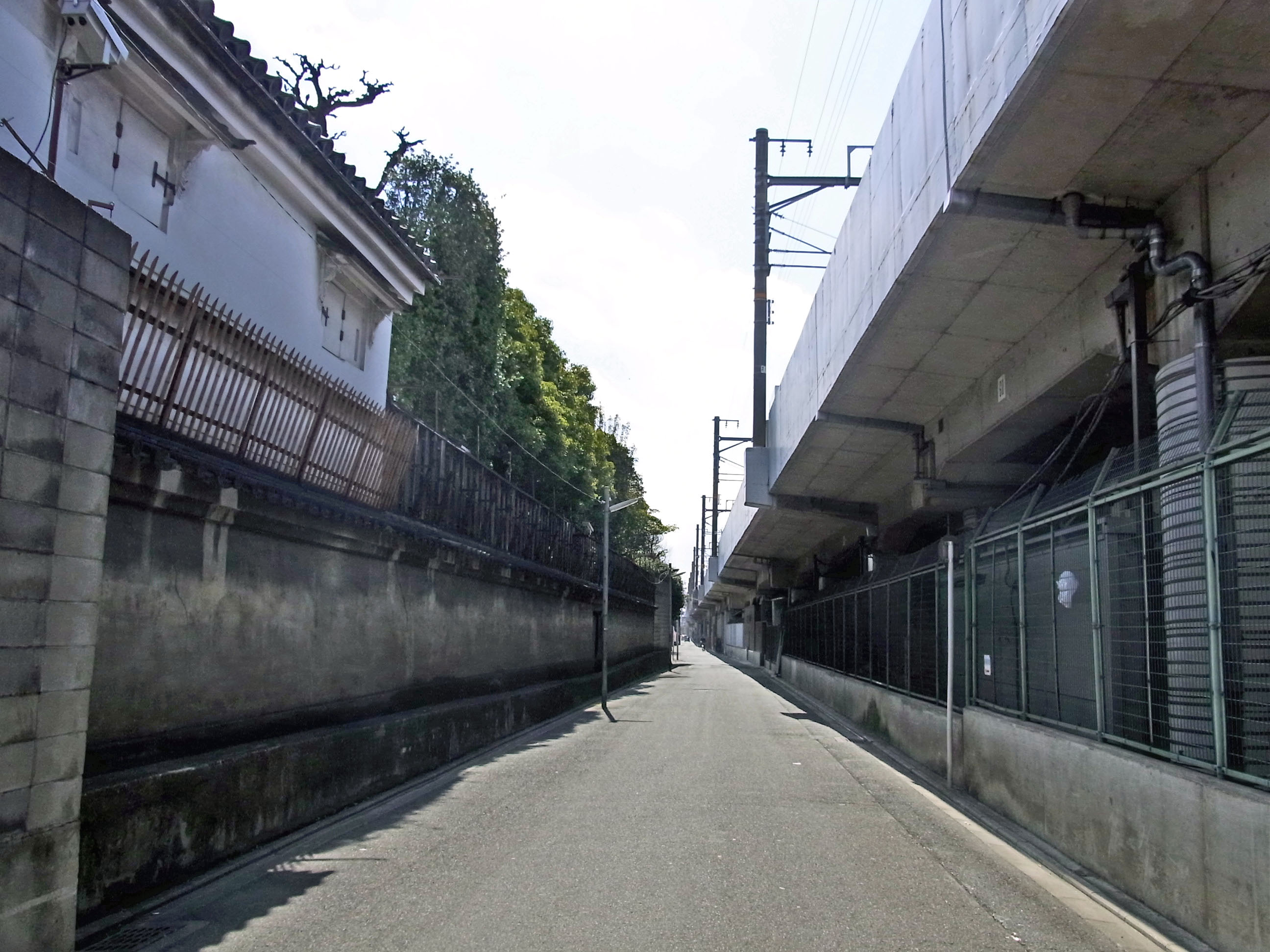 | 四条通を過ぎて嵐電の高架を超えたら、壬生寺の裏塀が見えてきます。 地図 |