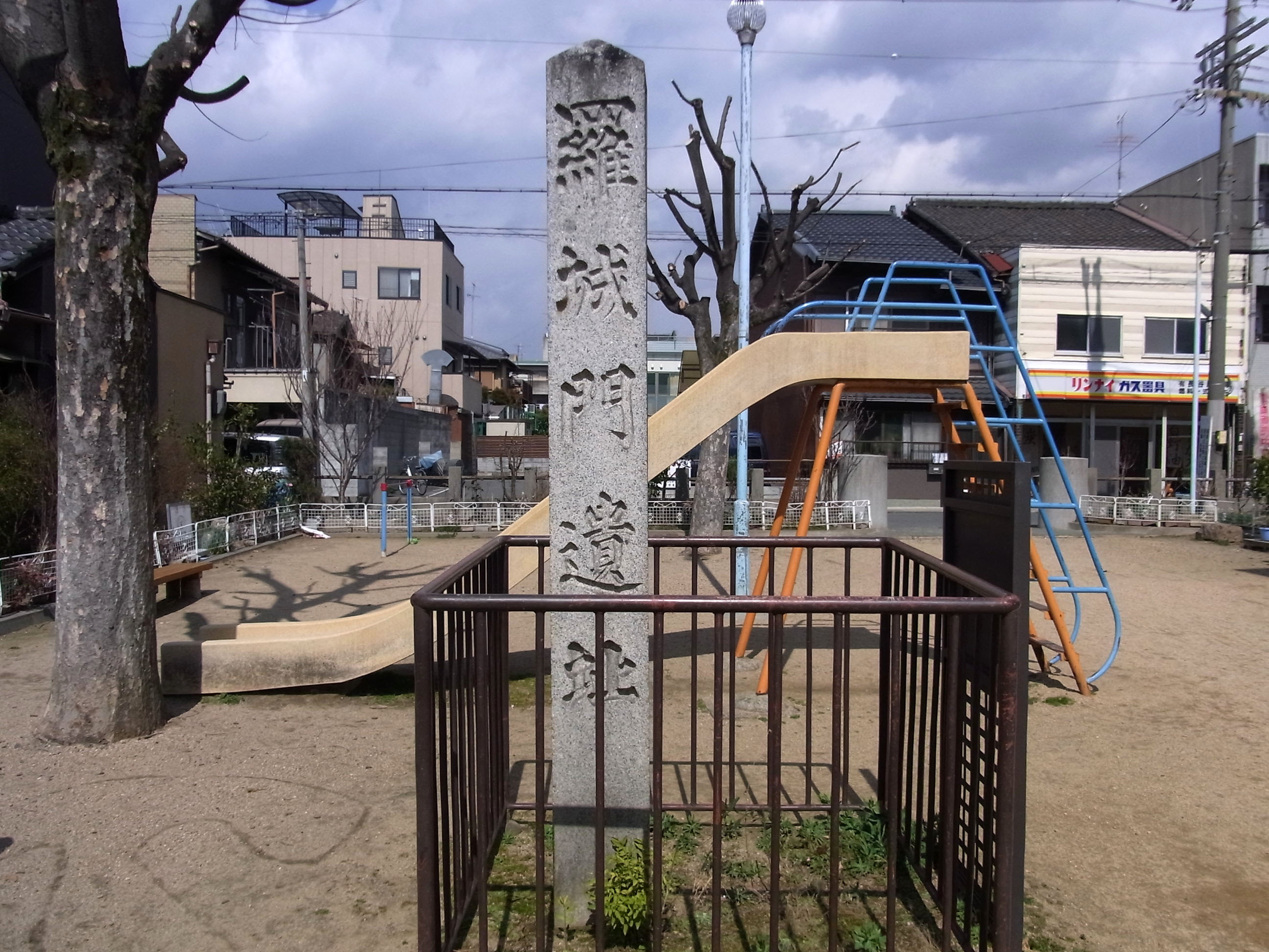 | 六孫王神社の西で千本通が復活 千本九条に都の入口である羅城門の石碑 地図 |