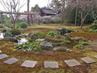 | 4月29日と11月3日にこの庭で、平安時代の装束で和歌を詠む「曲水の宴」が催されます。 |