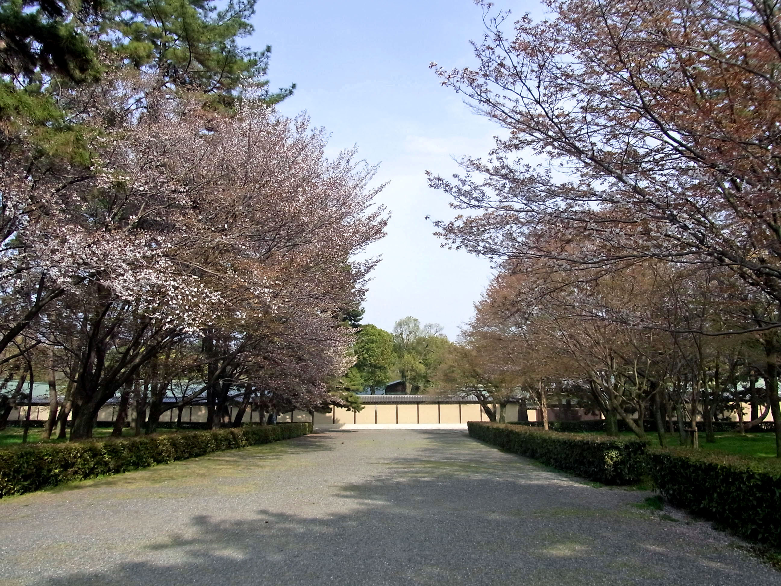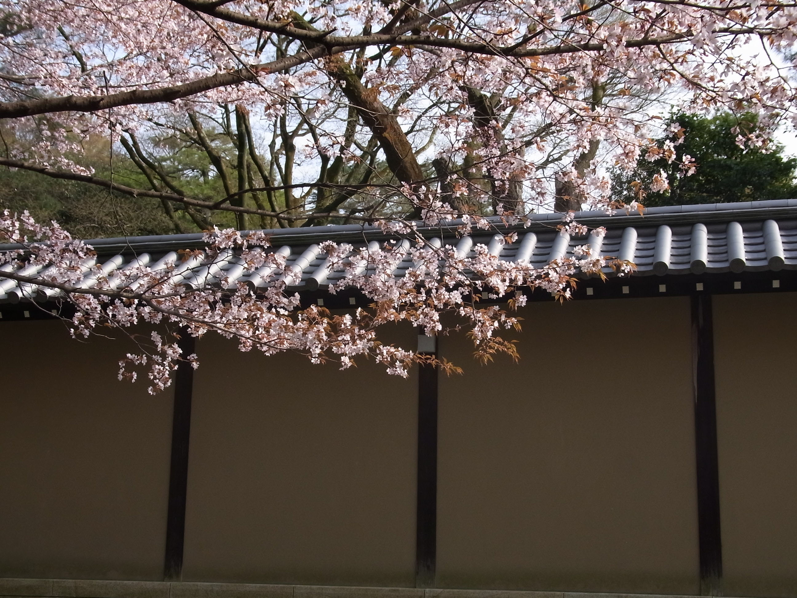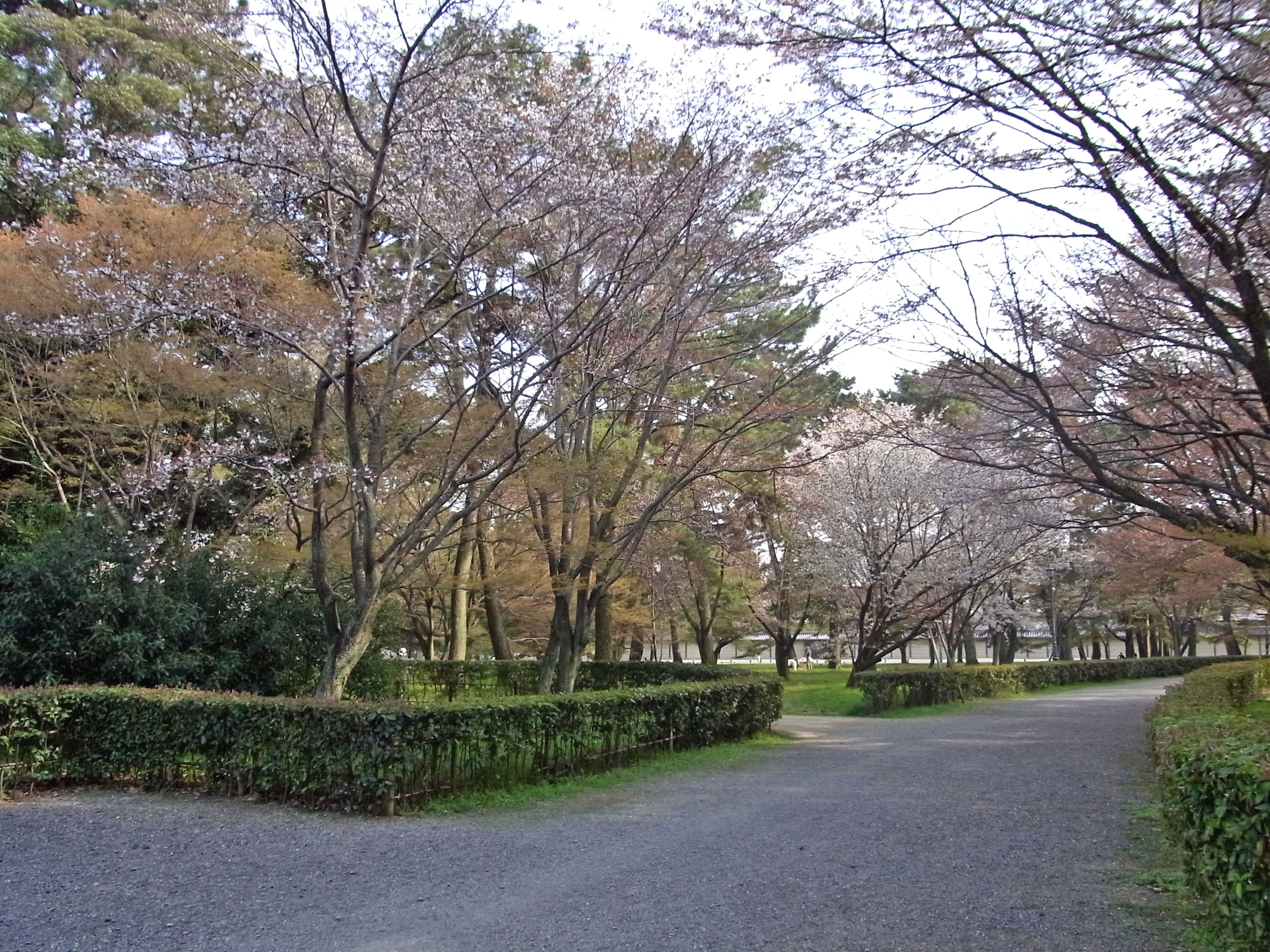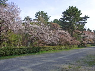 | 近衛邸跡は有名で大勢人が訪れますが、御所には山桜もたくさん咲いています。 特に迎賓館の周りの桜は、ほとんど山桜で人も少なく、とても風情があります。 (写真をクリックすれば拡大されます) |
