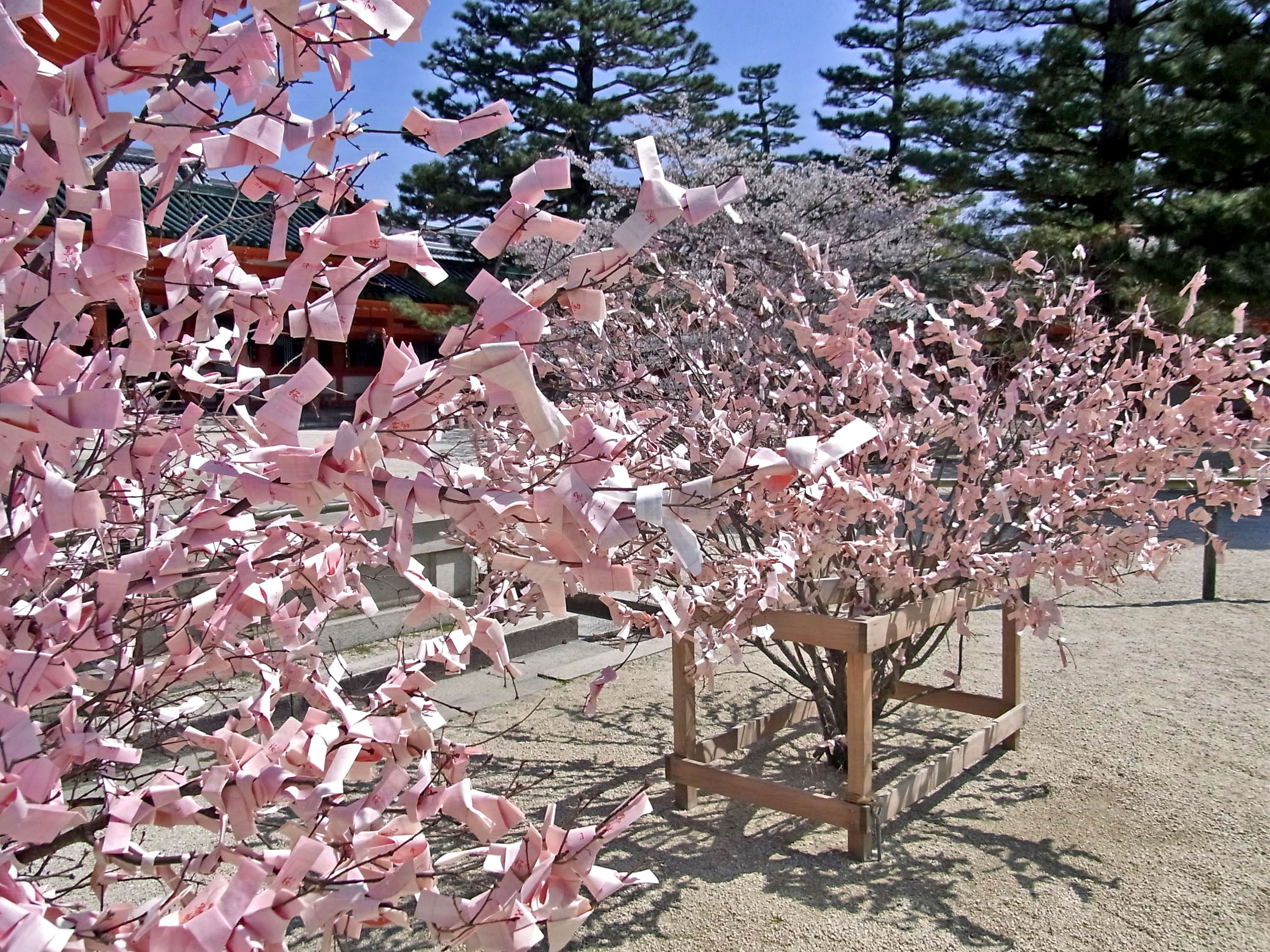 | おみくじも桜色で、境内に溶け込んでいました。 |