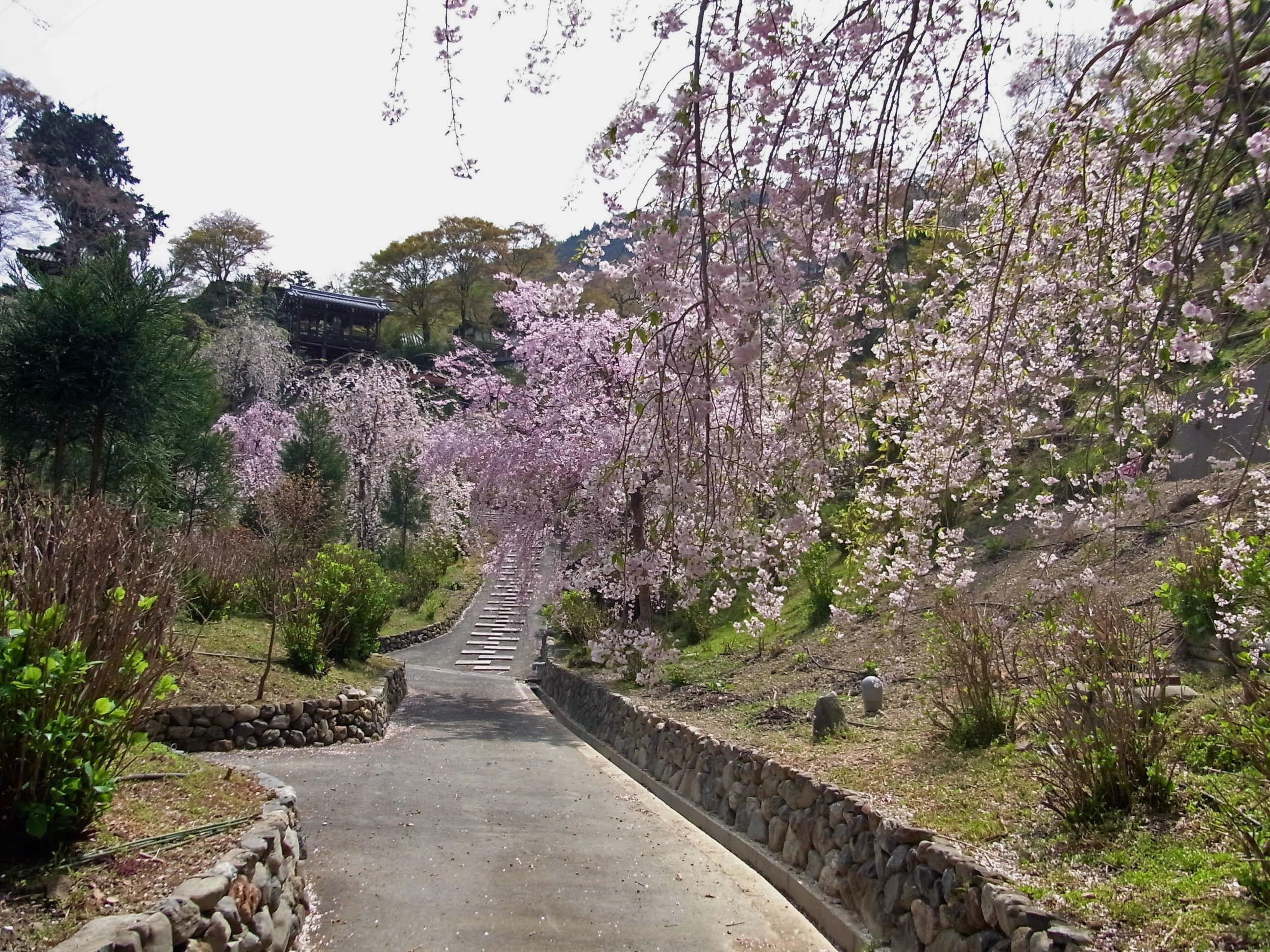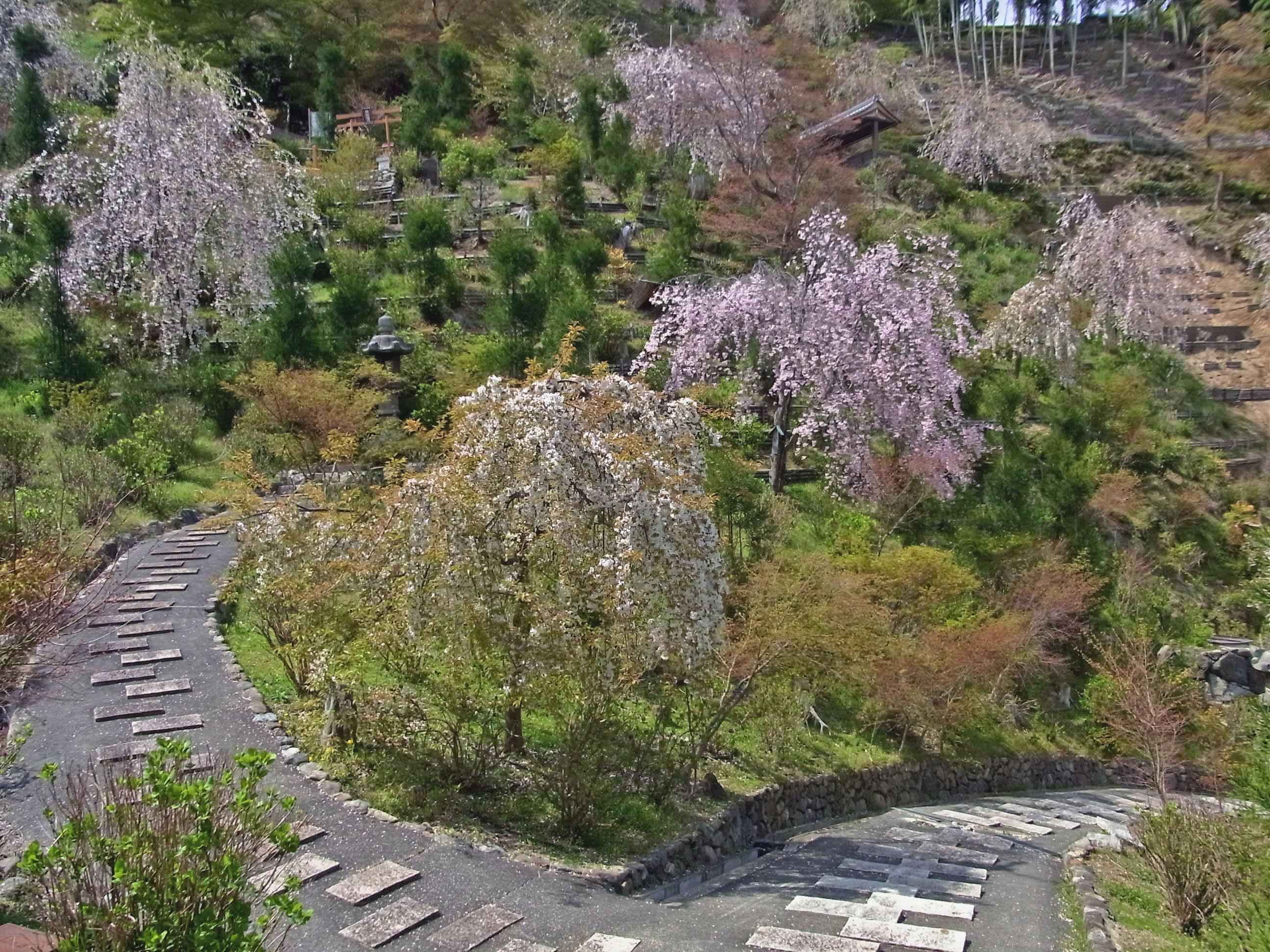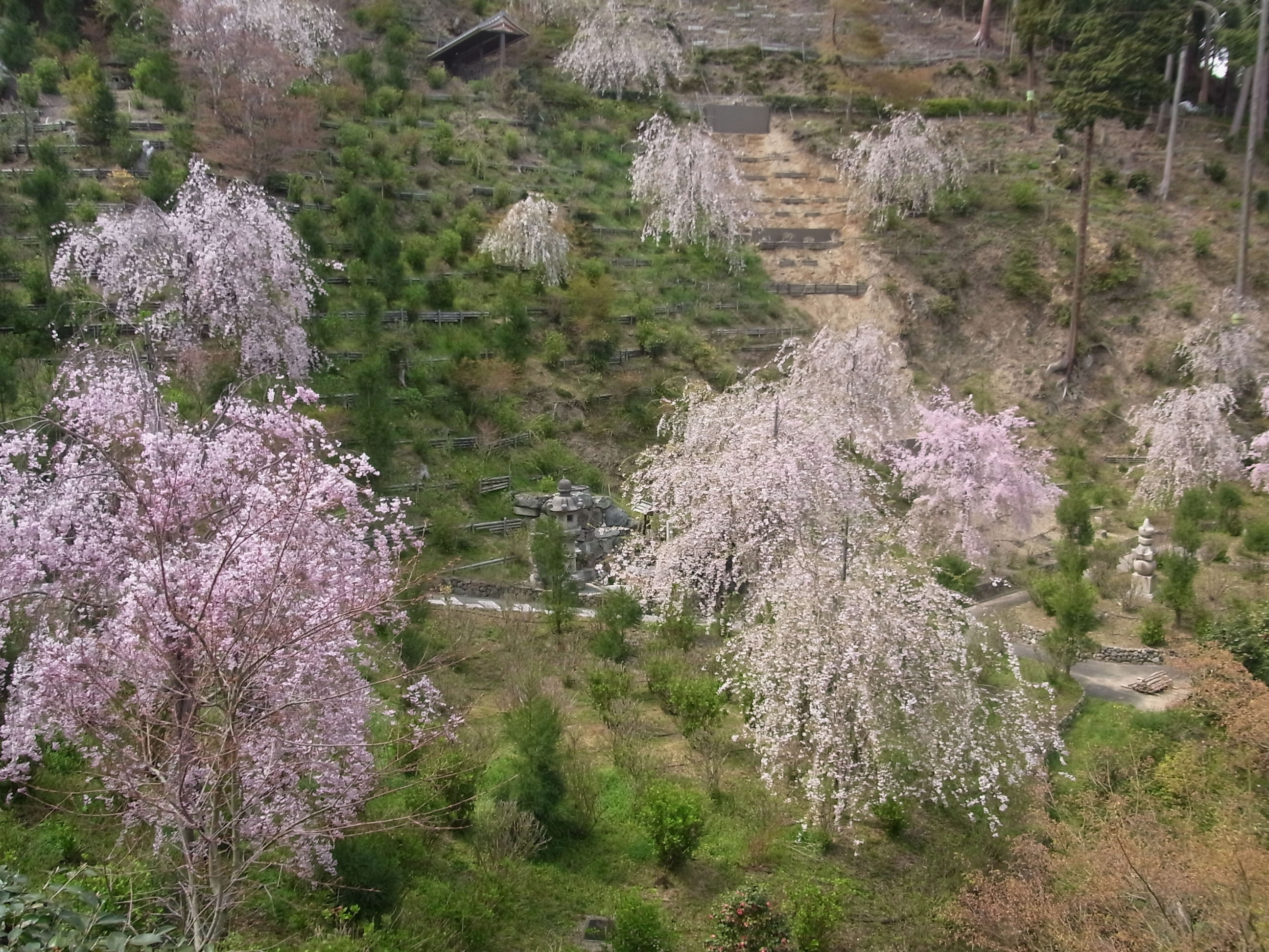 | 4年前の秋、秋明菊を見に訪れた時、山を切り開いて大々的な工事をしていました。その時 造られていた‘桜あじさい苑’の満開が見たくて行ってきました。 (写真をクリックすれば拡大されます) |