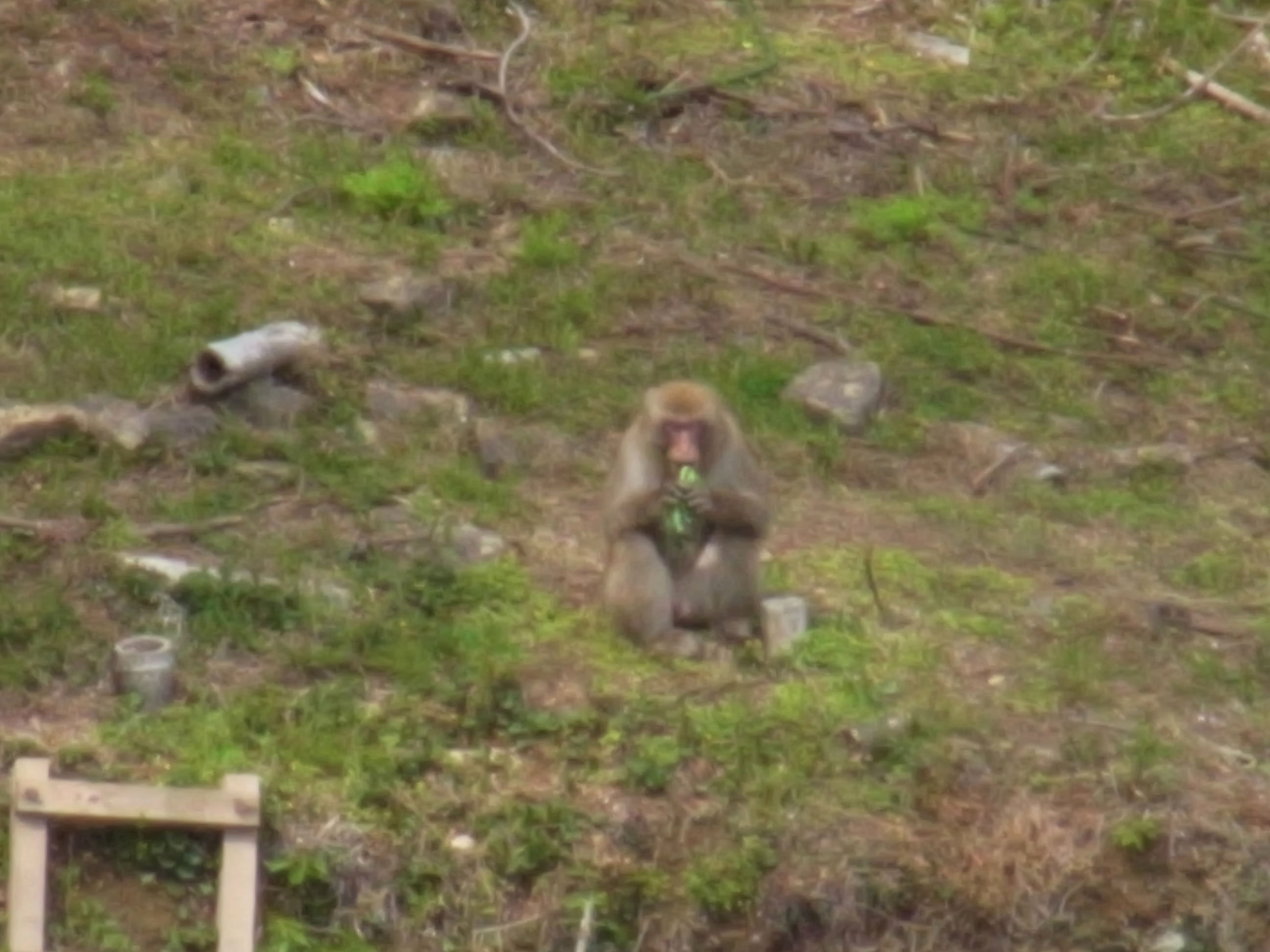 | 桜苑には人が誰も居ず、野猿が出て来て、暫くのんびりと食事をしていました。 |
