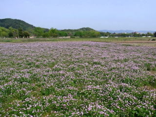 | 松尾大社に行く途中、広沢の池のレンゲ畑が綺麗でした。 |