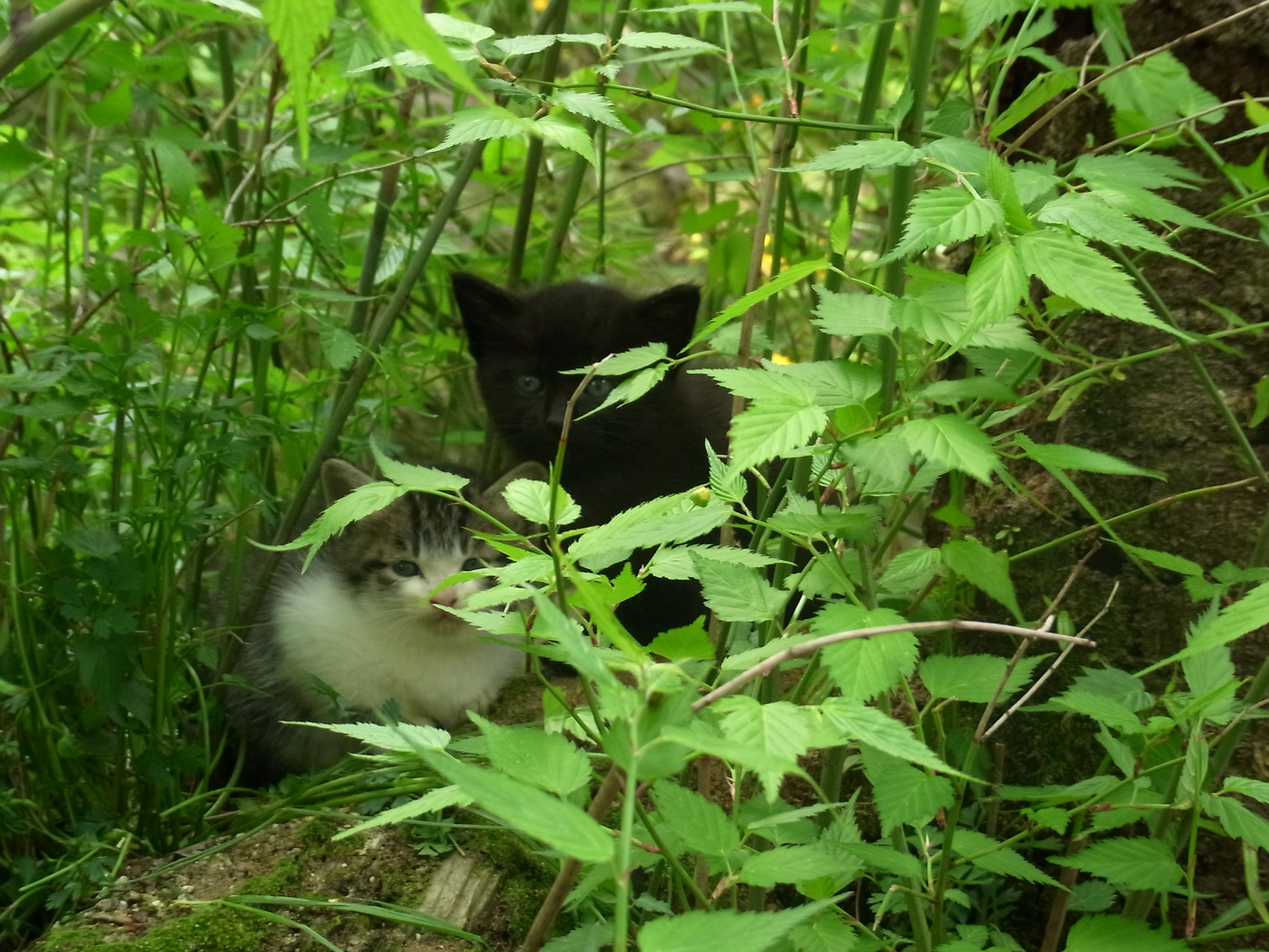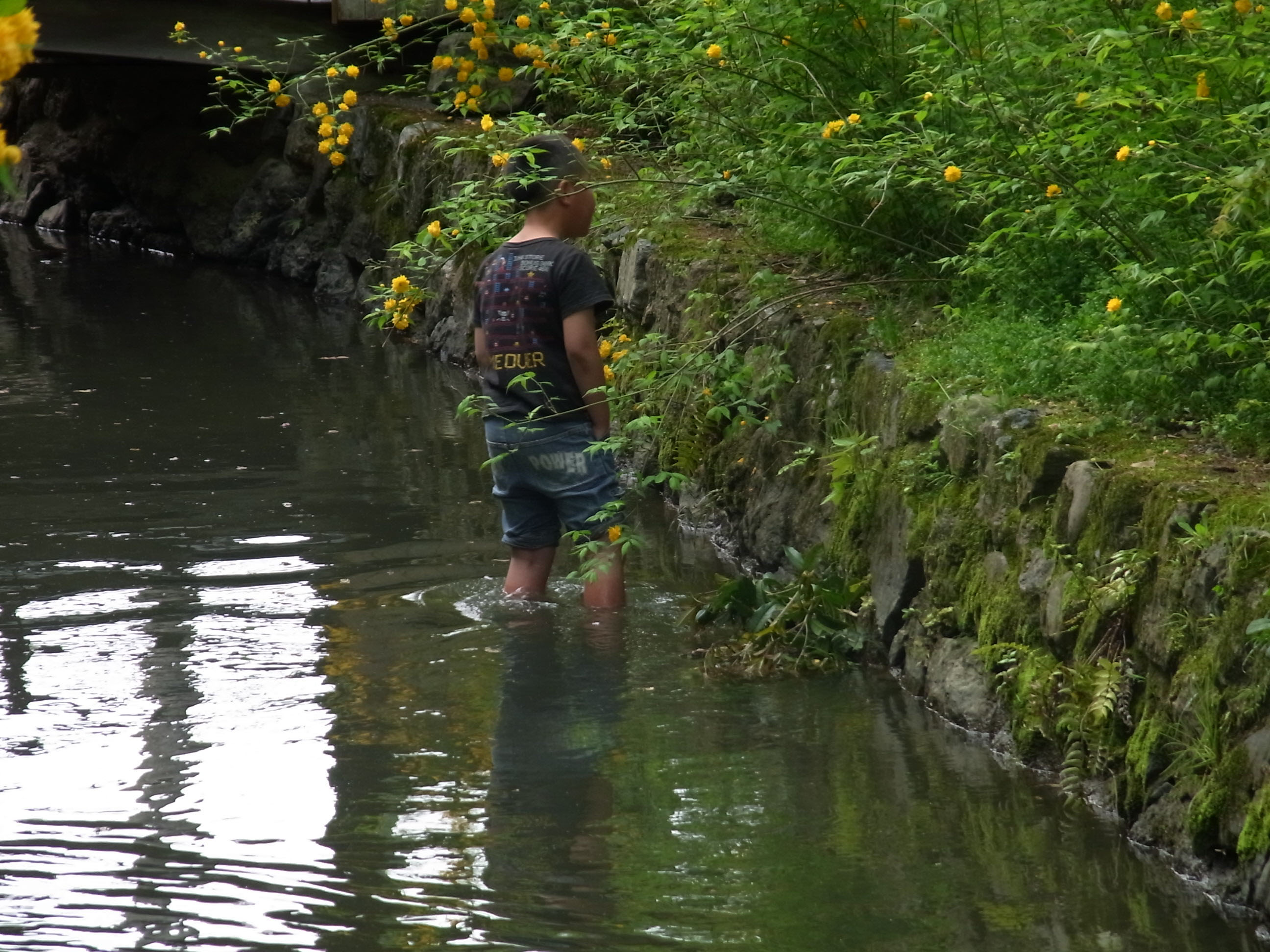 | 仔猫が二匹捨てられていて、その可愛らしさにたくさんの観光客が群がっていましたが、 近所の子供は、仔猫が川に落ちないかと心配して川の中に入って様子を窺っていました。 |