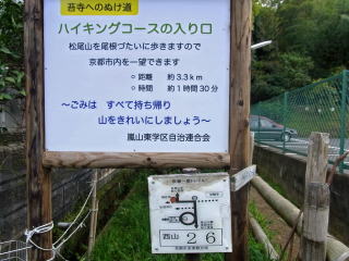 | 松尾大社からの帰り、法輪寺の近くでこの立看を見つけました。近い内に歩いて来ようと思っています。 |