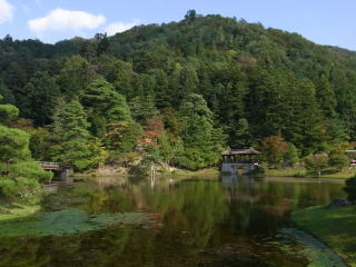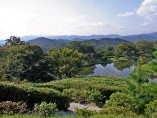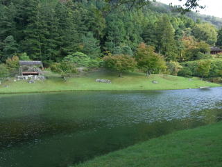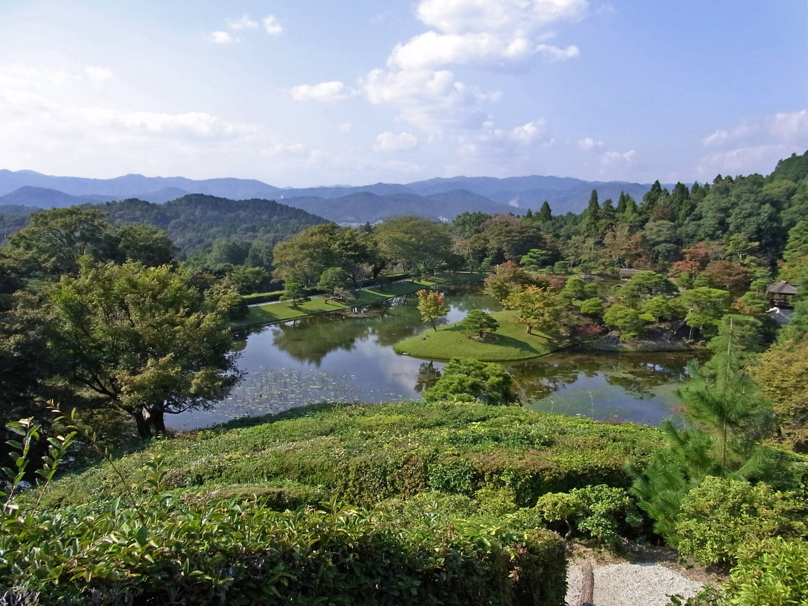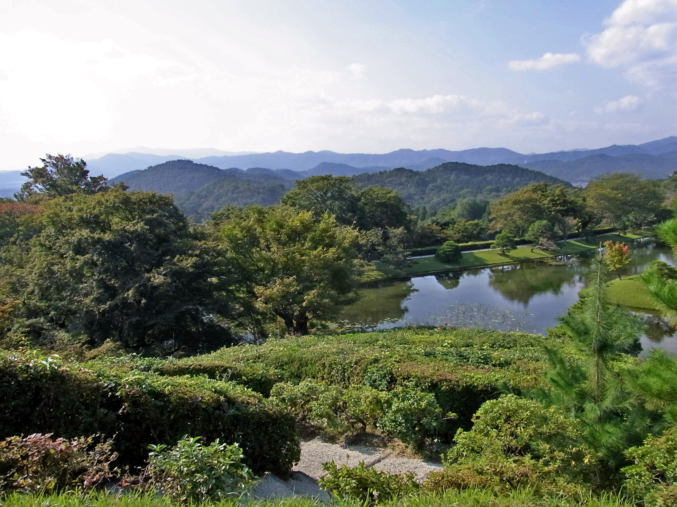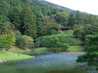 | 修学院離宮は、上・中・下三つの御茶屋がありますが、下ノ茶屋と中ノ茶屋は、ただ上ノ茶屋へ 行くための序曲であり、その効果を最大に見せるためだけにあるような気がします。 御成門から高い刈り込みで視界が遮られているので、隣雲亭に着いて振り返って見る浴龍池 から北山の借景の雄大さは、あっと云う驚きで、ただもう見事です! でも42年前と違ったのは、北山の借景の中に白い煙突が見えたことで、係員に聞くと洛北市原 のゴミ焼却炉で、京都市にせめて白を緑色にしてくれるよう折衝していると云っていました。 もう一つは洛北の街が発展して、住宅地が山すそまで迫ってきて、視界に入ってきていました。 宮内庁は近隣の山を買い取って国有地にして、借景を守ろうとしているのですが、やはり限界が あり借景庭園の困難さを感じました。 地図 |