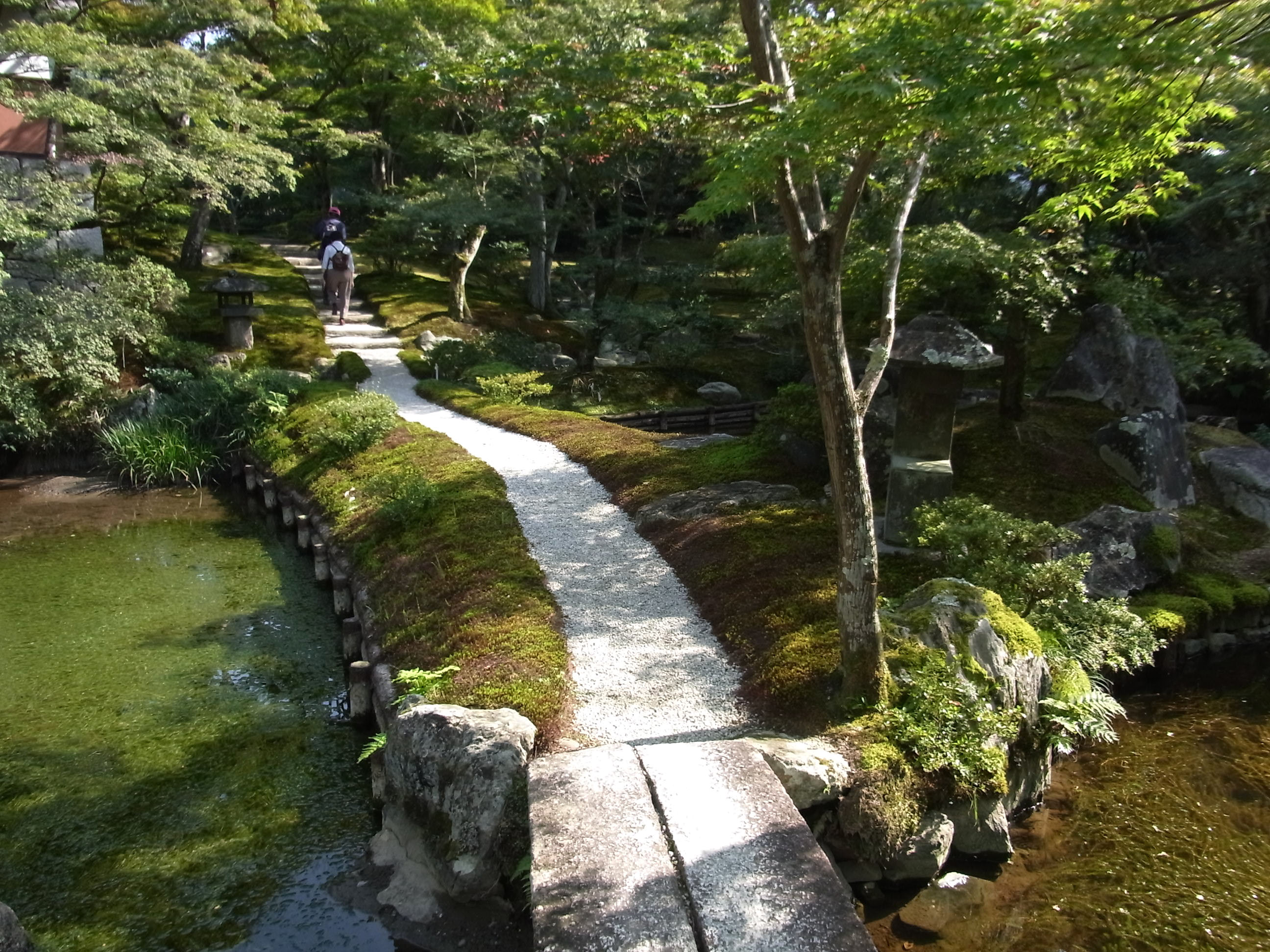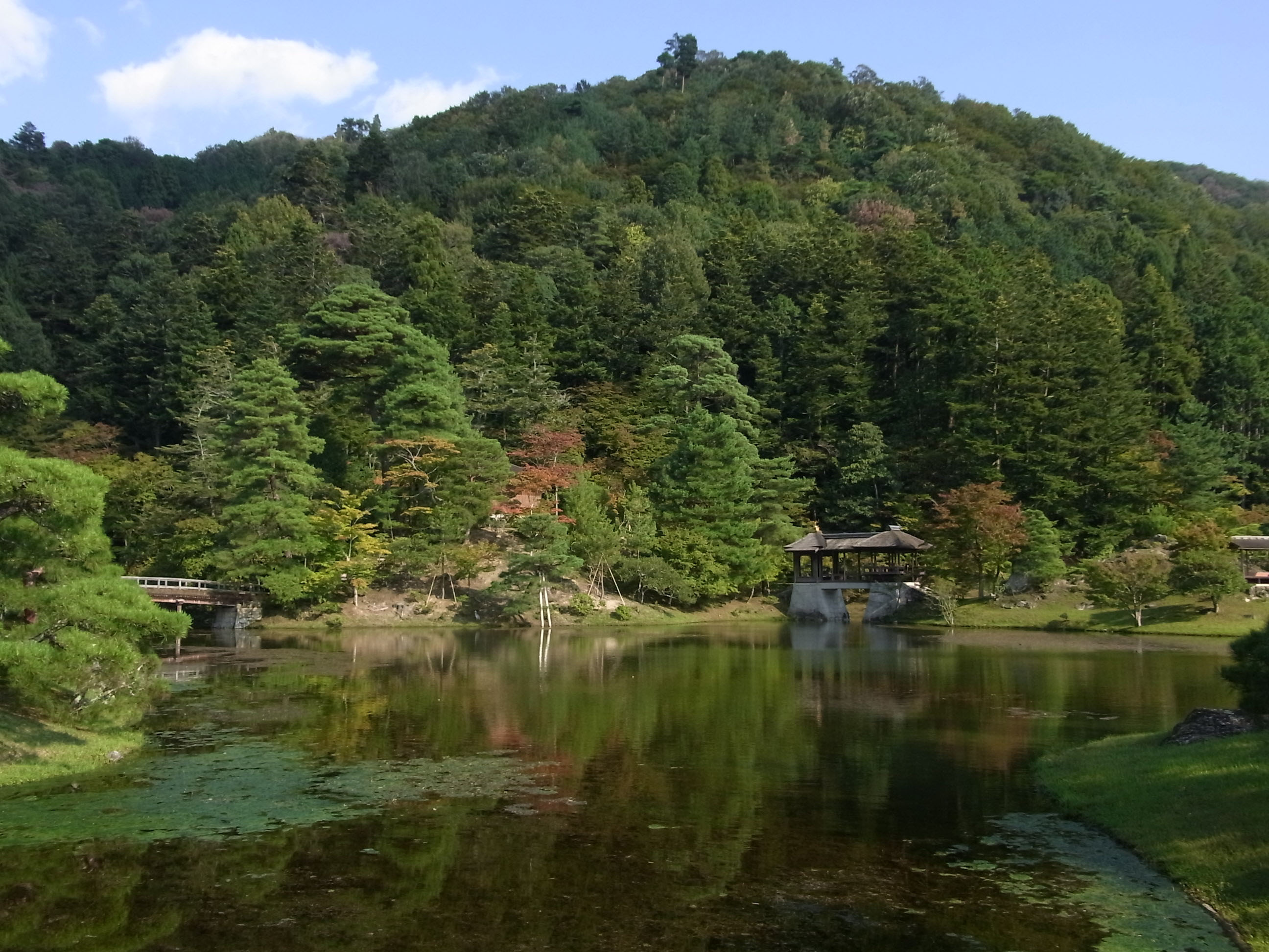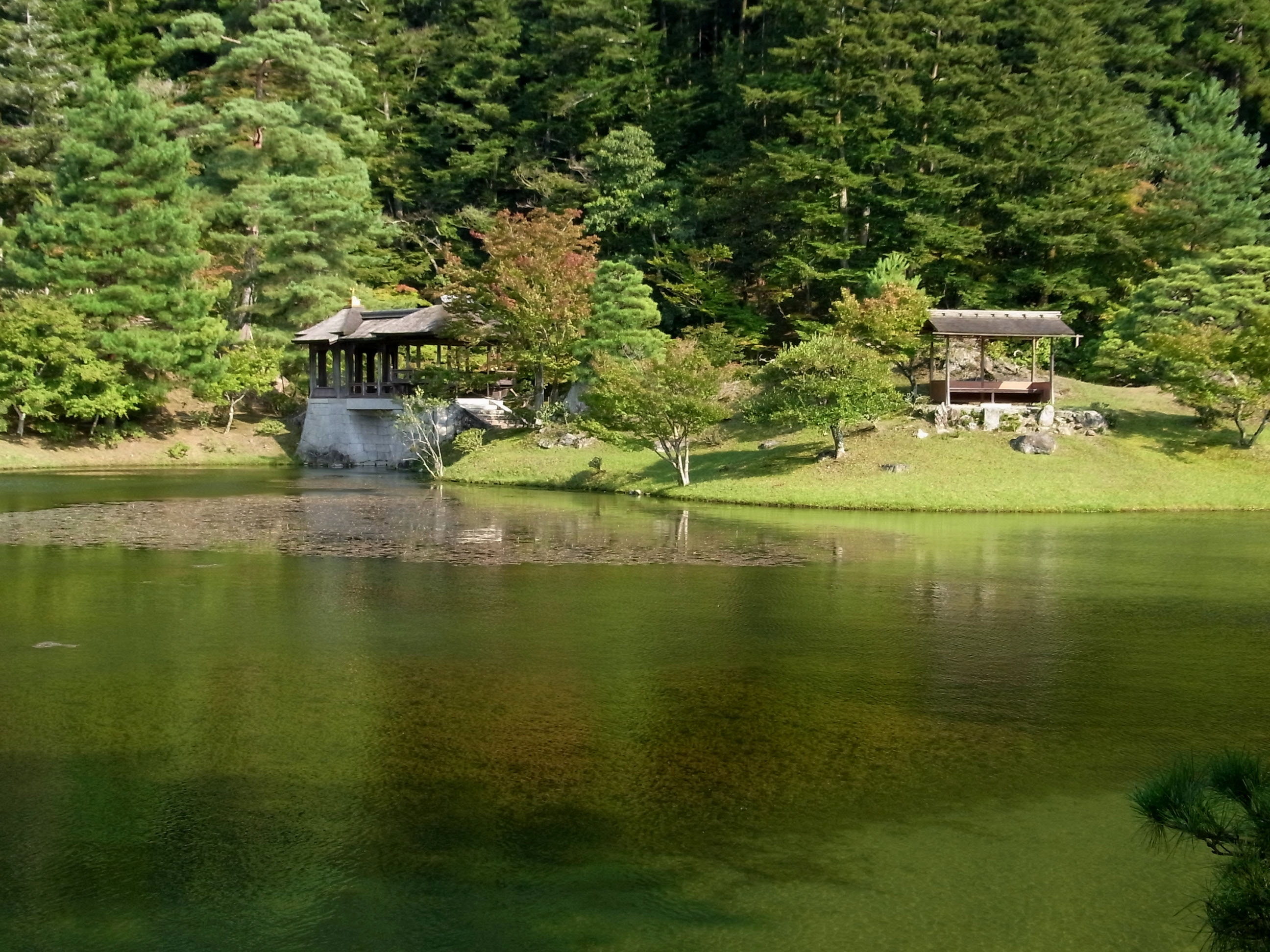 | 修学院離宮は、上・中・下三つの御茶屋がありますが、下ノ茶屋と中ノ茶屋は、ただ上ノ茶屋へ 行くための序曲であり、その効果を最大に見せるためだけにあるような気がします。 御成門から高い刈り込みで視界が遮られているので、隣雲亭に着いて振り返って見る浴龍池 から北山の借景の雄大さは、あっと云う驚きで、ただもう見事です! でも42年前と違ったのは、北山の借景の中に白い煙突が見えたことで、係員に聞くと洛北市原 のゴミ焼却炉で、京都市にせめて白を緑色にしてくれるよう折衝していると云っていました。 もう一つは洛北の街が発展して、住宅地が山すそまで迫ってきて、視界に入ってきていました。 宮内庁は近隣の山を買い取って国有地にして、借景を守ろうとしているのですが、やはり限界が あり借景庭園の困難さを感じました。 地図 |