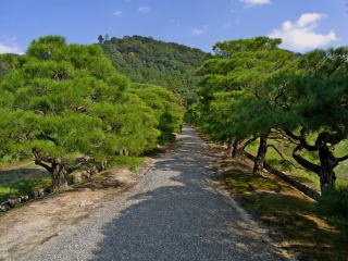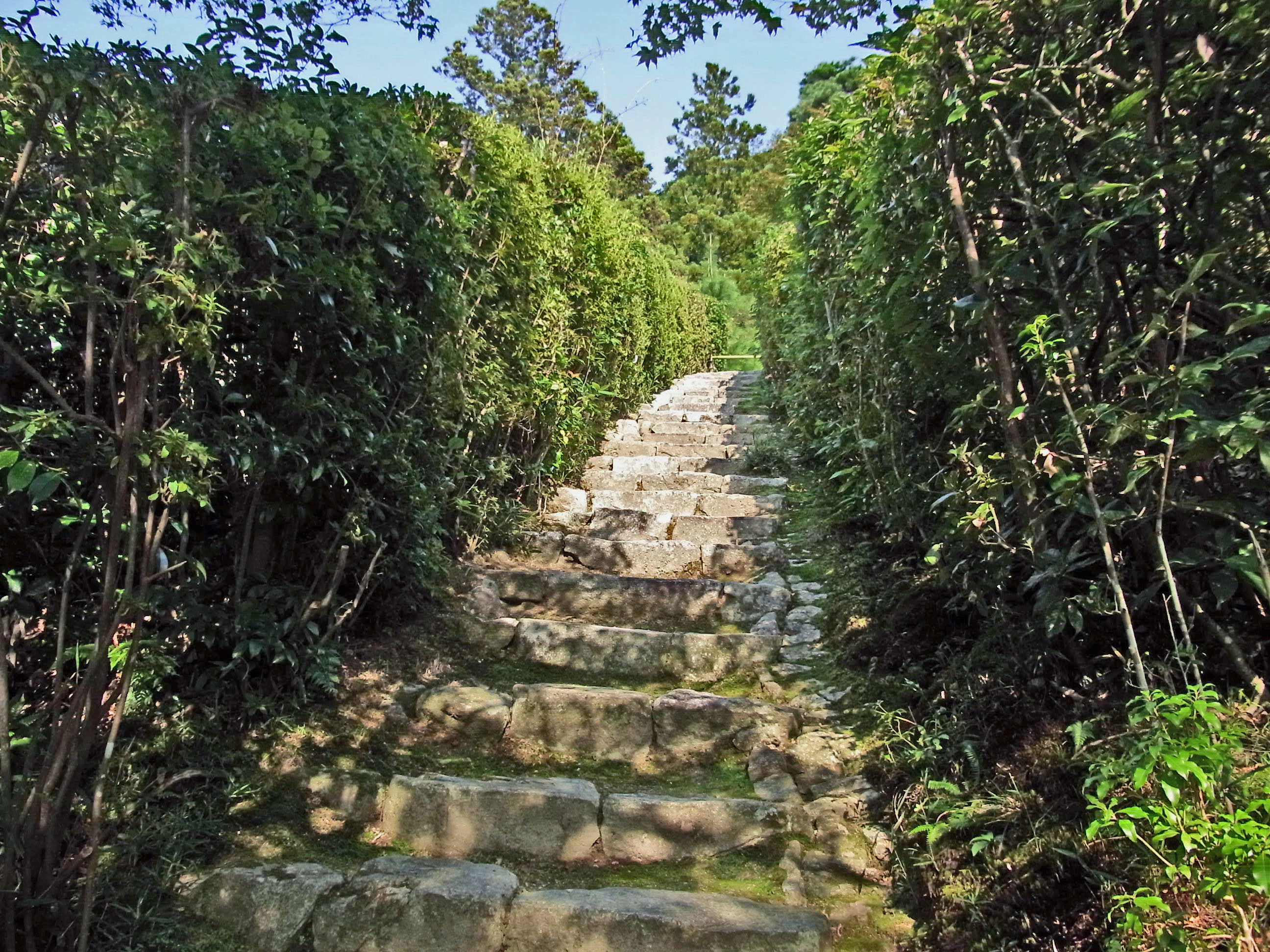 ![]() 高い刈り込みの石段を登って隣雲亭へ |