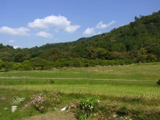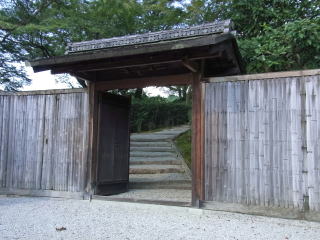 | 中ノ茶屋から上ノ茶屋へ同じく田園の中の松並木を上がって行くと、御成門に着きます。 |