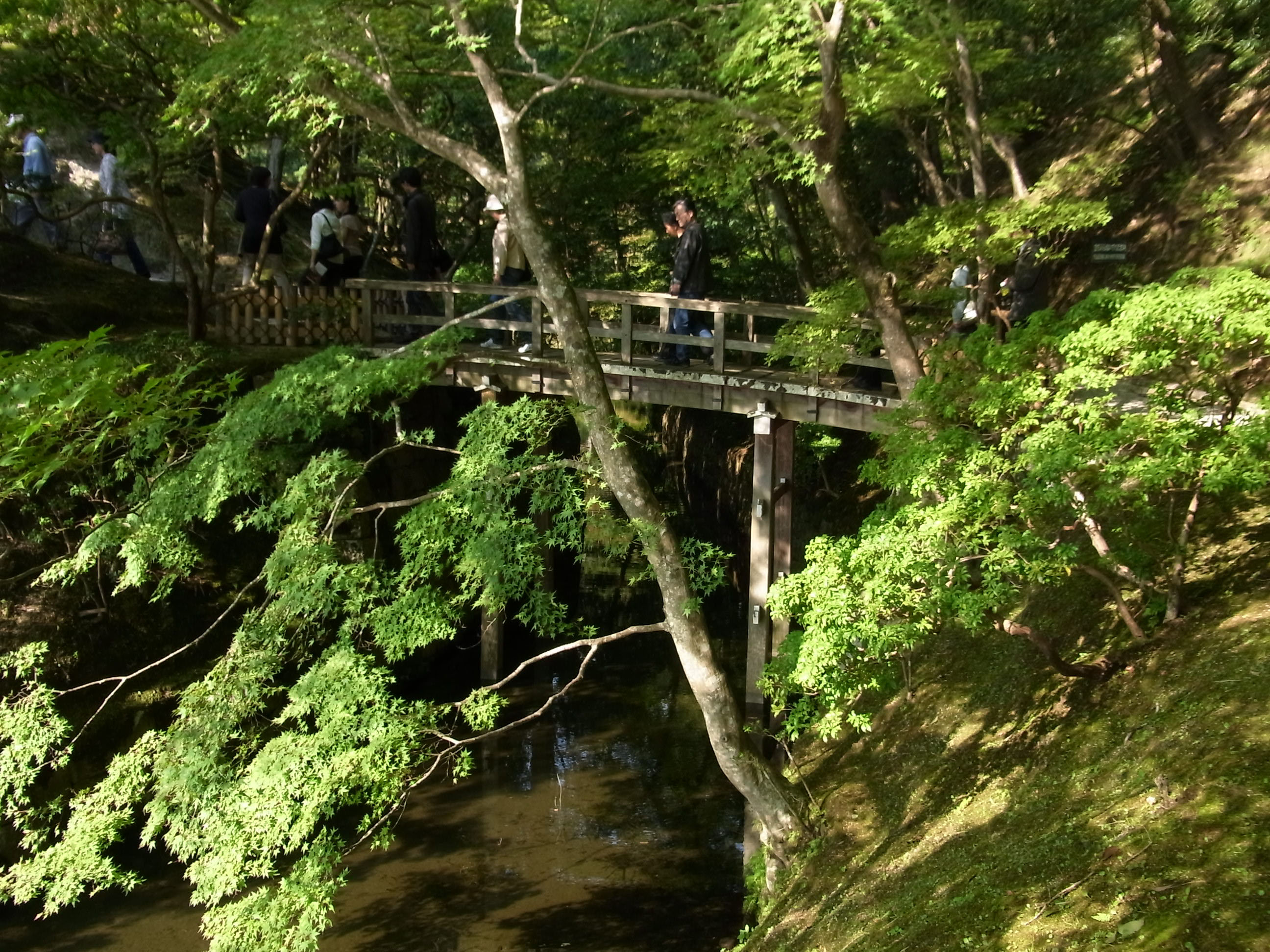 | 42年前、大学1回生の時、古美術研究会に入部して最初に、桂離宮と修学院離宮の拝観手続き を命じられ、たくさんの部員の中を飛び廻ったことを、懐かしく想い出しました。その時の印象は、 計算され尽くした桂離宮より雄大な修学院離宮の方が断然好みで、事実桂離宮は何も憶えてい なかったのですが、修学院離宮の上ノ茶屋からの眺望は鮮やかに記憶に残っていました。 修学院離宮は、後水尾上皇が1659年に完成した山荘です。皇后は今年の大河ドラマの主人公江 と徳川秀忠との五女、徳川和子(東福門院)なので、徳川幕府からの多大な寄進があったそうです。 |