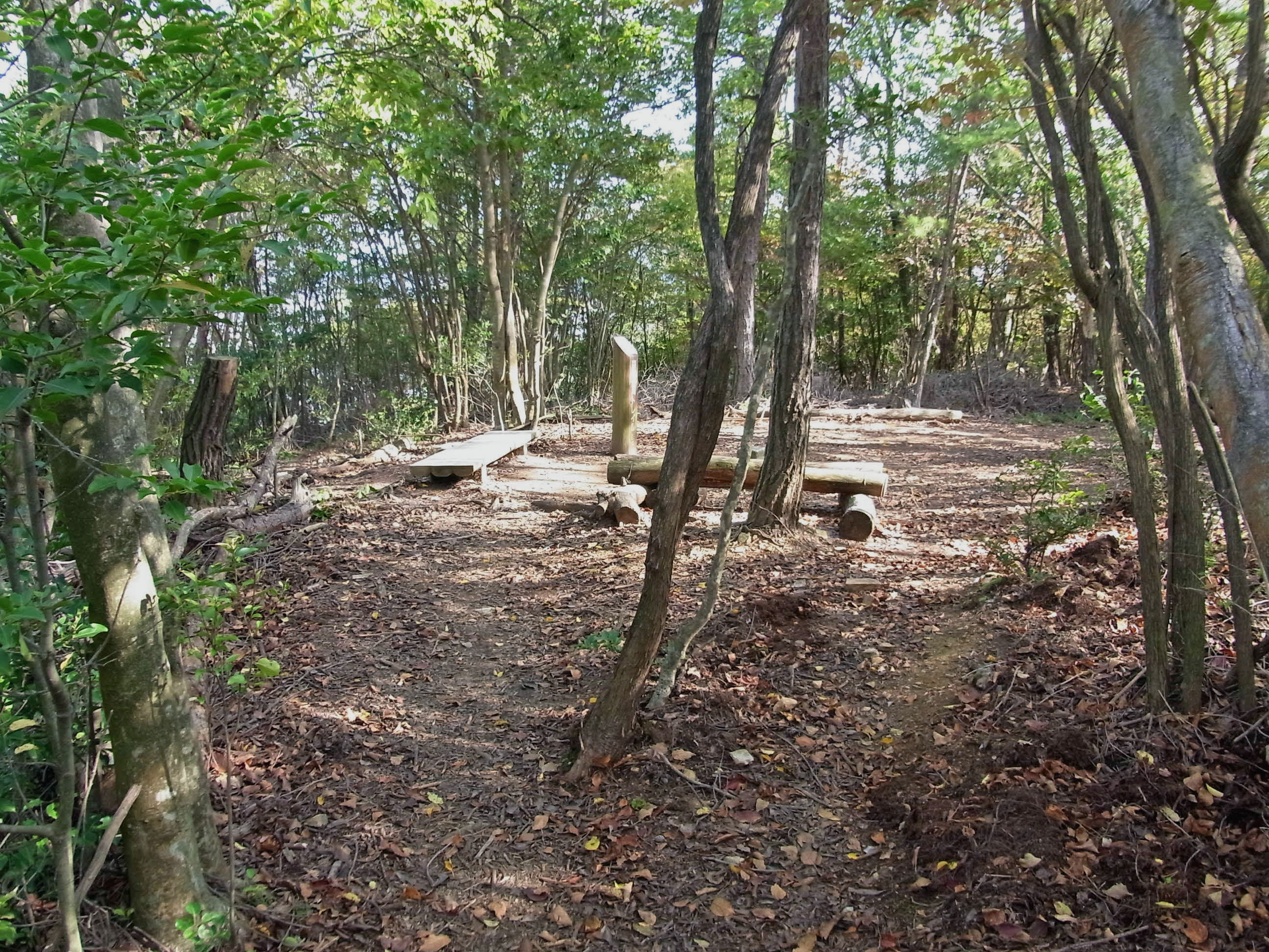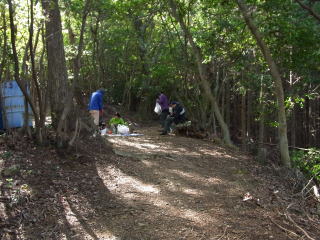 | 歩きやすい山道を尾根道まで登ったら、若いグループがシートを引いて休憩していました。 |