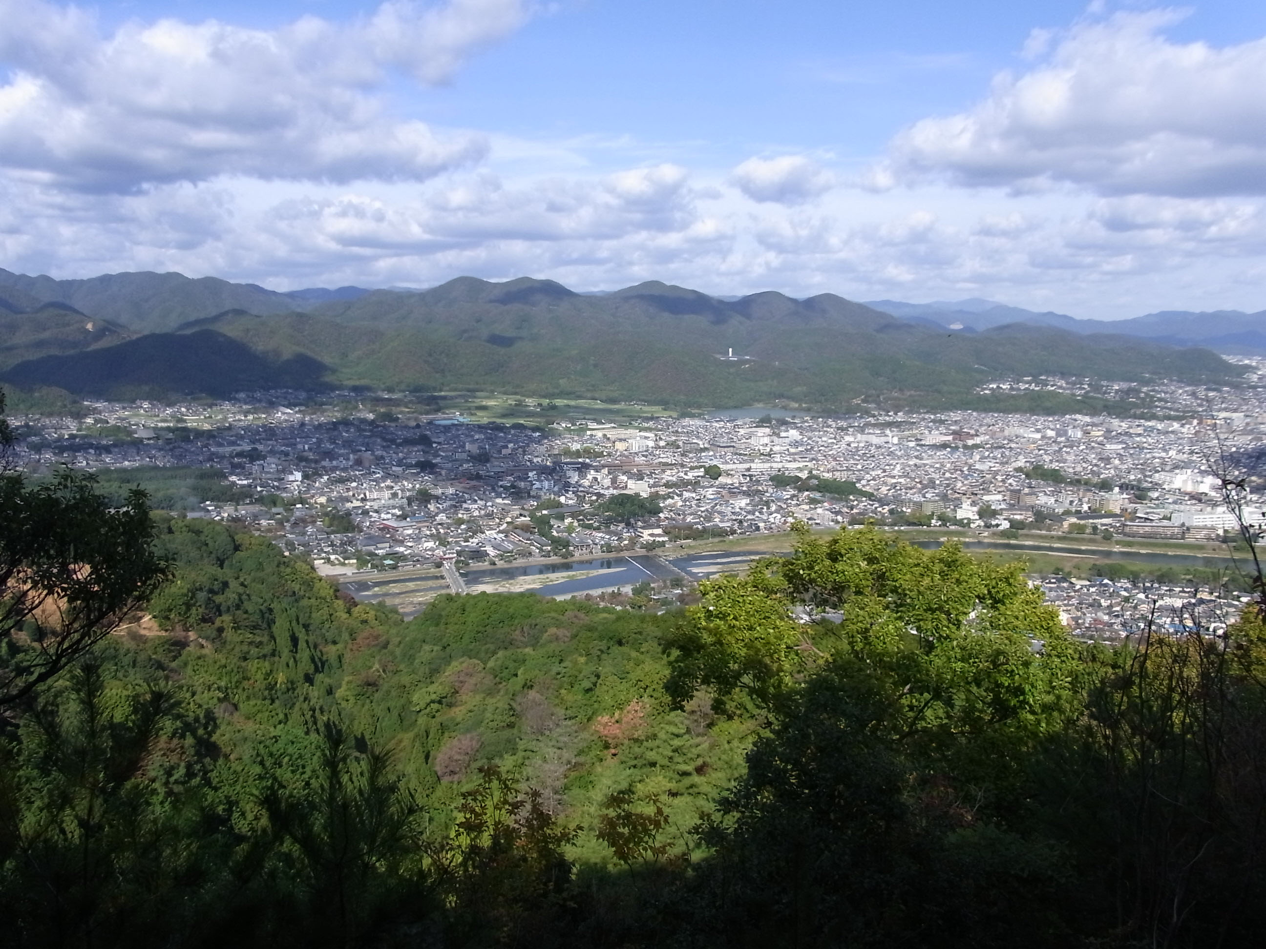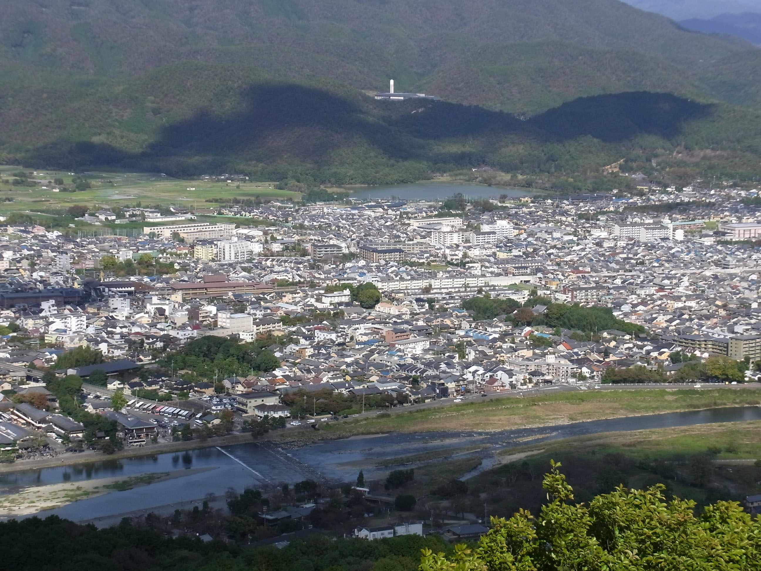 ![]() 右下に岩田山モンキーセンターのえさ場 左上のコブが付いている山は、愛宕山 |