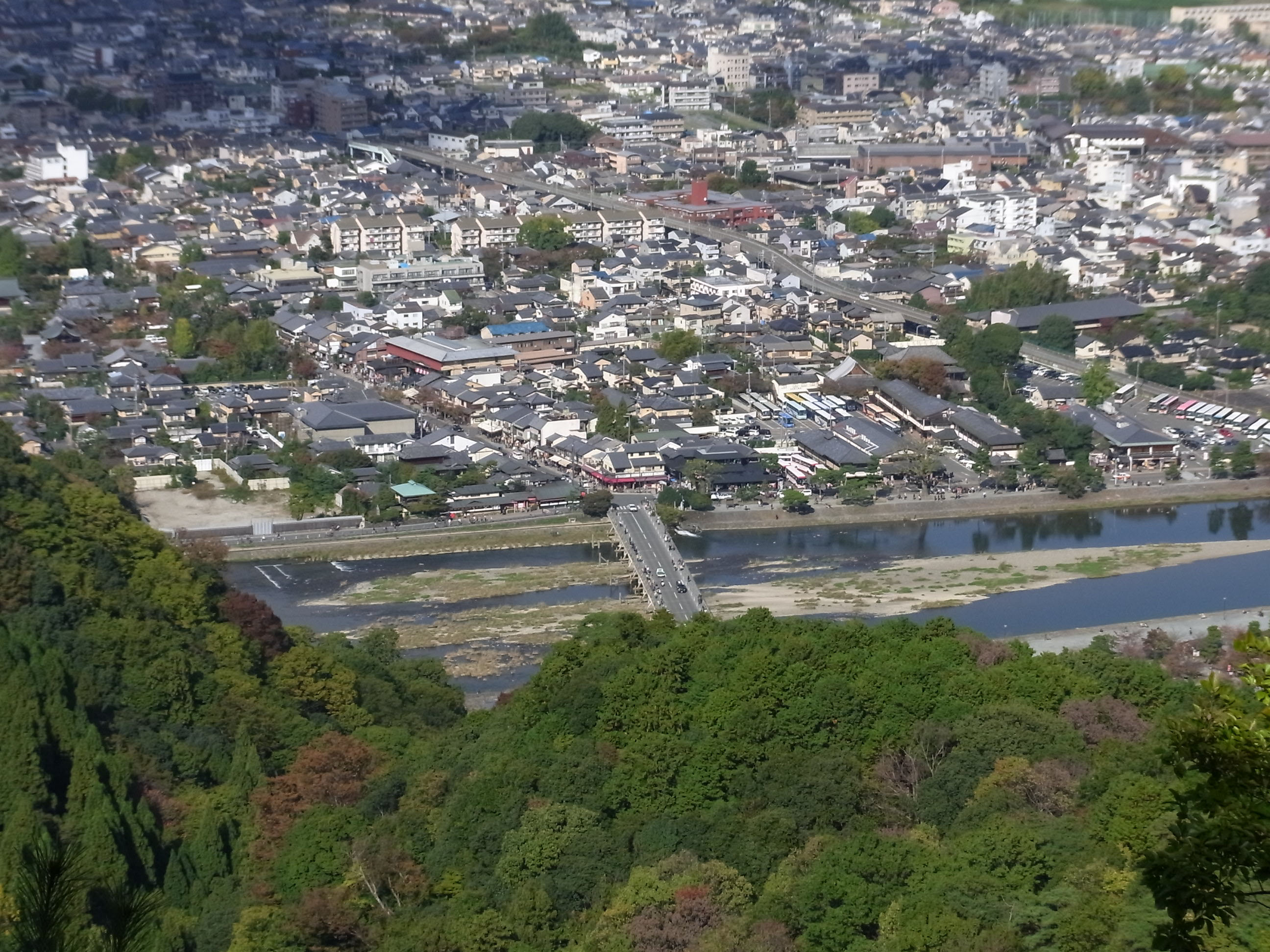 ![]() 真下に渡月橋 |