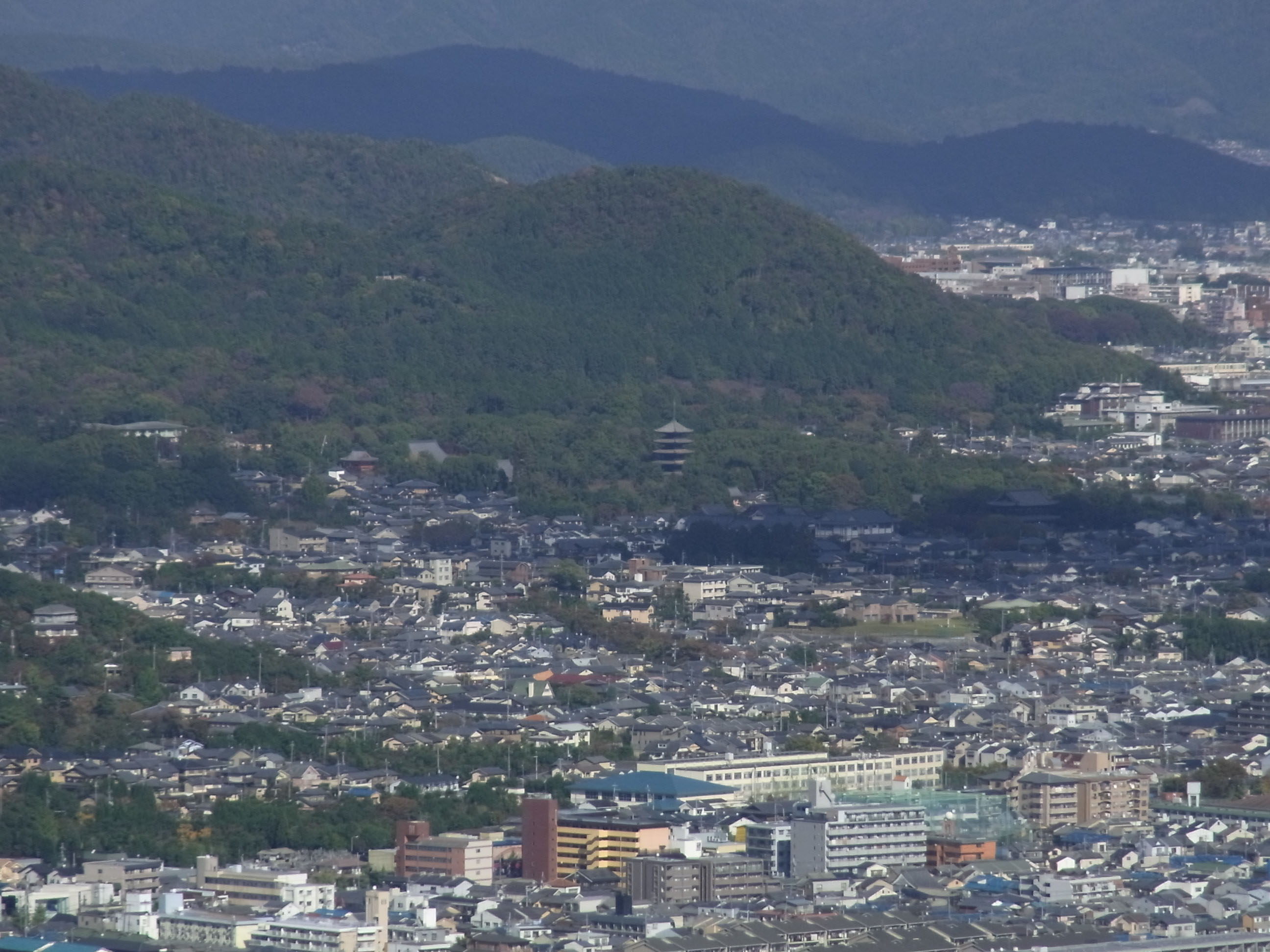 ![]() 真中の山裾に仁和寺の五重塔 |